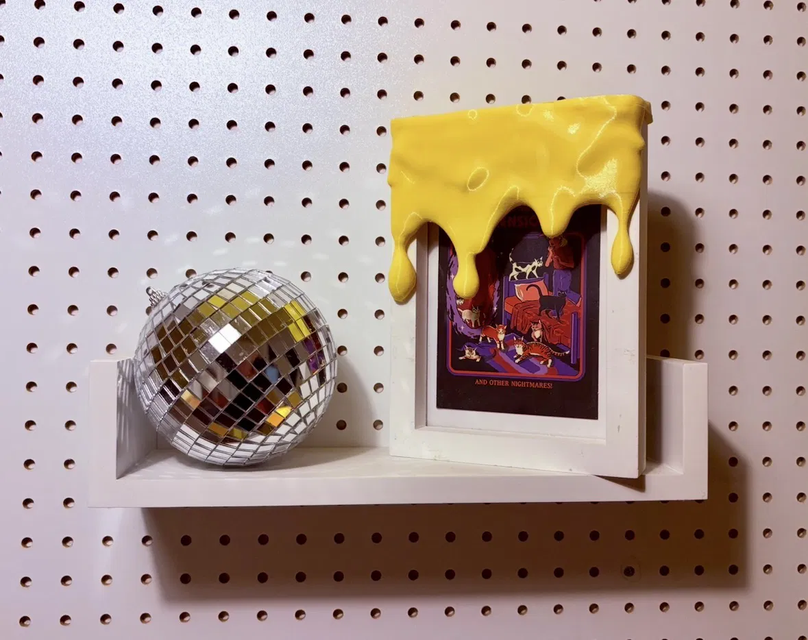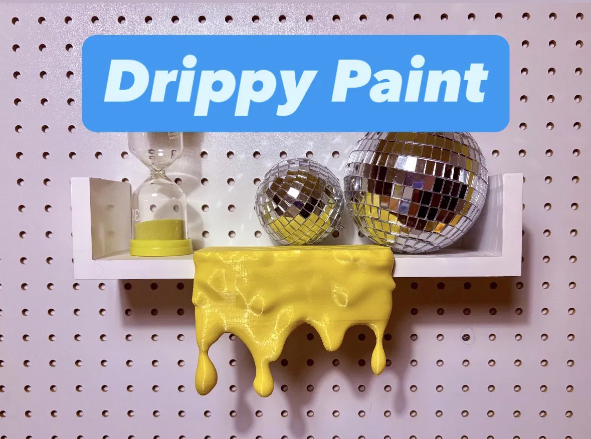 Món decor kiểu “sơn chảy” đặt lên kệ, tủ hoặc khung tranh, nhìn như sơn nhỏ giọt hay phô mai chảy. Thường tự đứng vững; muốn chắc hơn có thể dán băng keo hai mặt. Nên print úp ngược và dùng ironing.