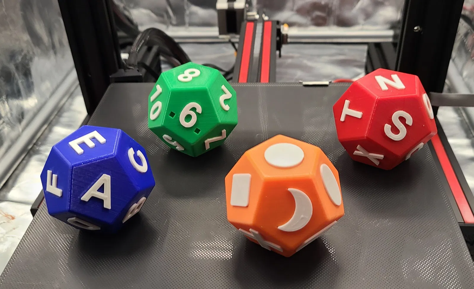 Hai tuổi của tôi có một bộ khối (48 khối) và chúng không đi du lịch tốt, vì vậy tôi đã lấy các hình dạng, chữ cái và số có trong bộ đó và thiết kế một vài dodecahedron có tất cả 48 chỉ trên bốn "khối". Anh ấy thực sự thích chúng và đưa chúng đi khắp mọi nơi. Tôi đã mất 3 tuần để lấy lại tất cả bốn người trong số họ để chụp ảnh. Sau khi chờ keo khô hoàn toàn, tôi đã kiểm tra từng chữ cái để đảm bảo nó sẽ không tắt trước khi để con trai tôi chơi với chúng (chỉ trong trường hợp).