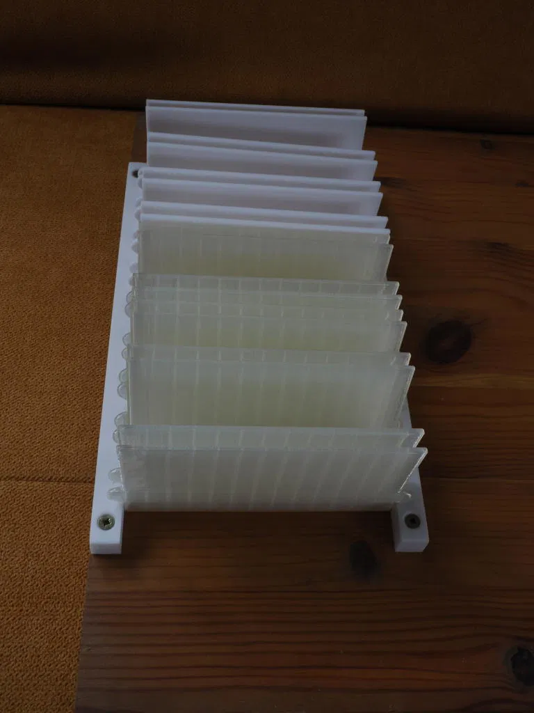 Giá đỡ để trưng bày tranh/ảnh trên painting plate hoặc bìa cứng, cho phép lật xem như cuốn album. Gồm 2 thanh có lỗ và 9 ngàm giữ, lắp bằng cách bắt vít lên tấm gỗ. In chuẩn với PLA/PETG.