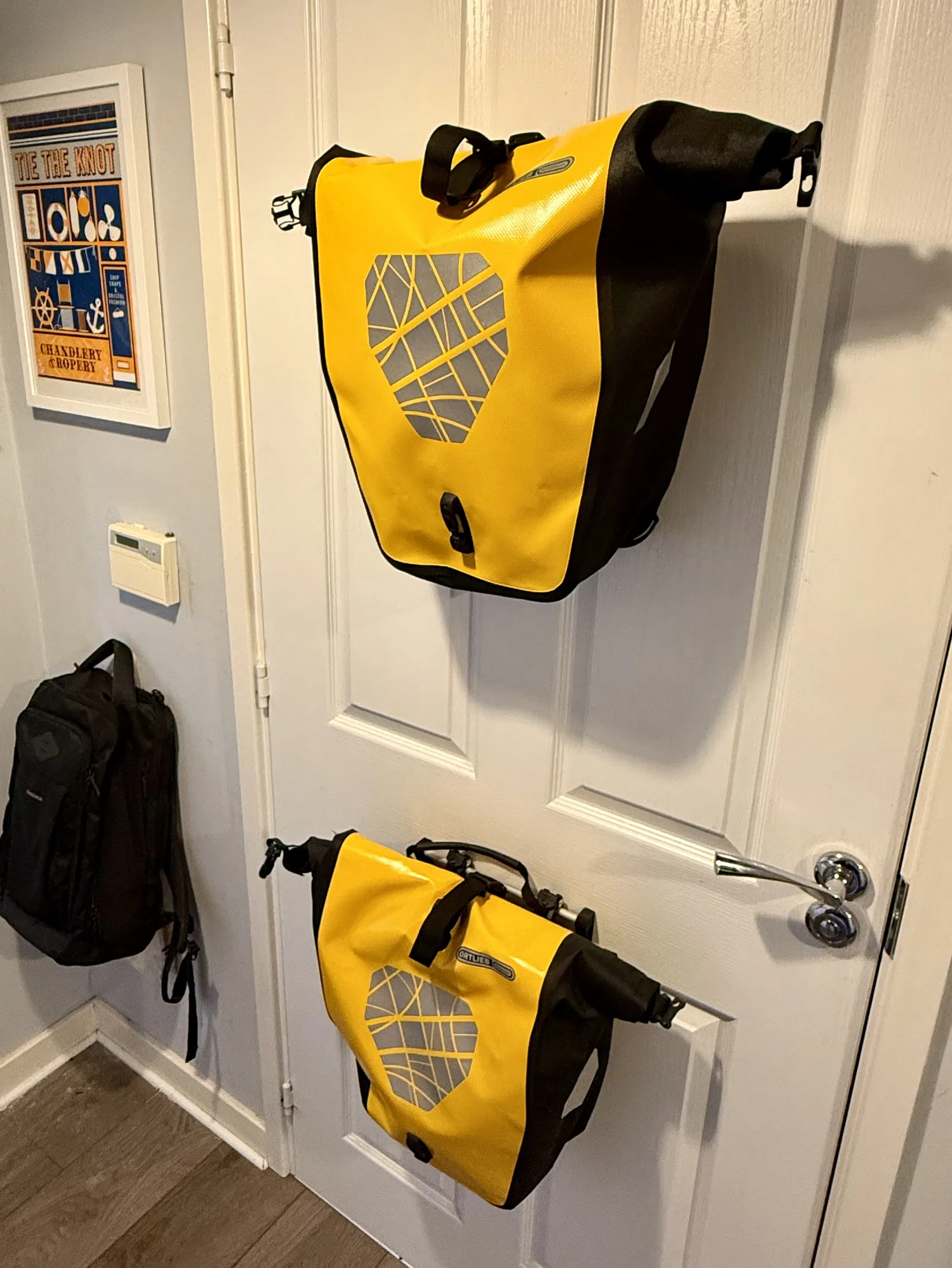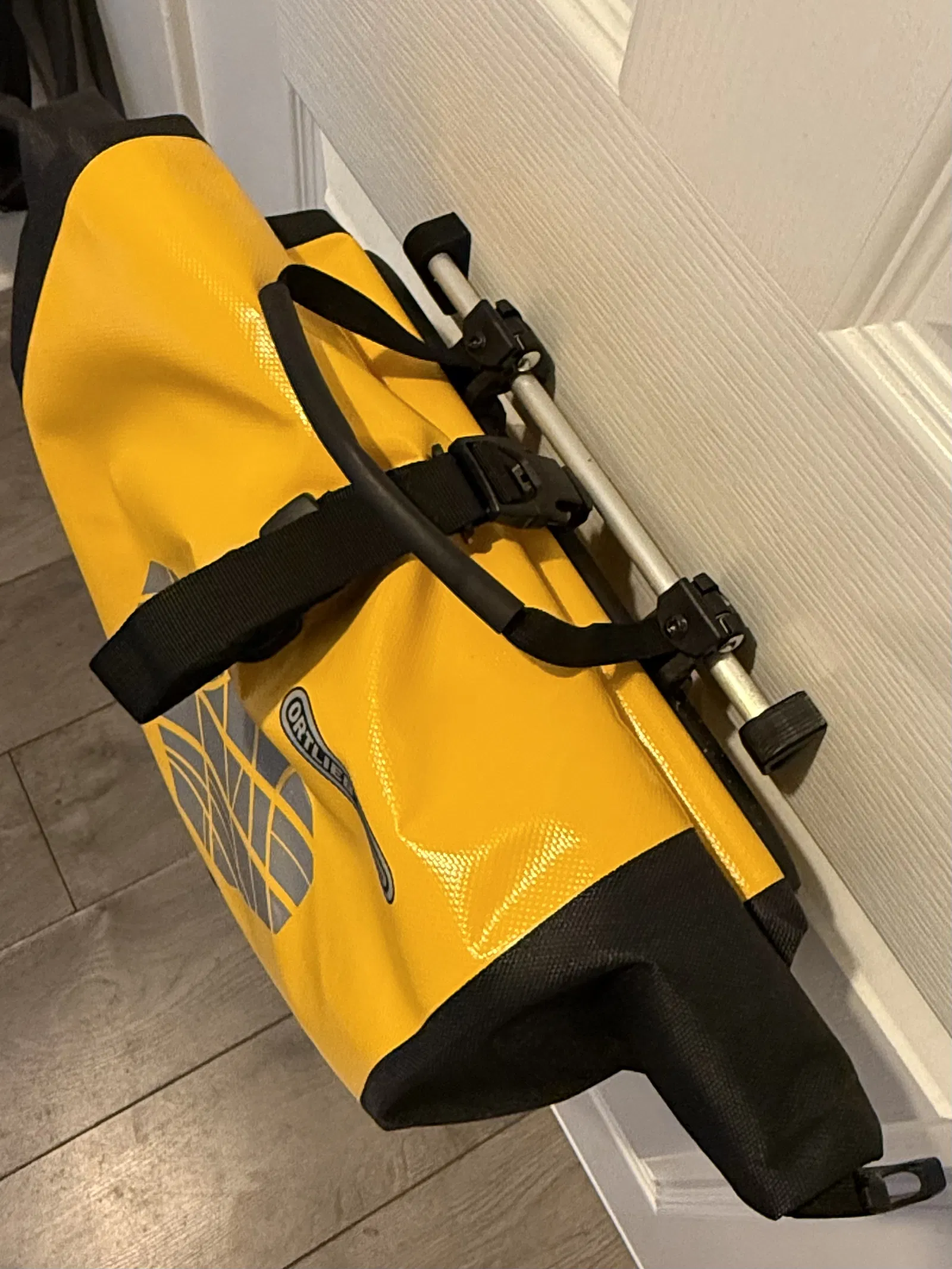 Hai đầu bracket phù hợp để gắn ống/thanh 10mm nhằm treo gọn túi pannier lên tường hoặc cửa (đã test với túi Ortleib).