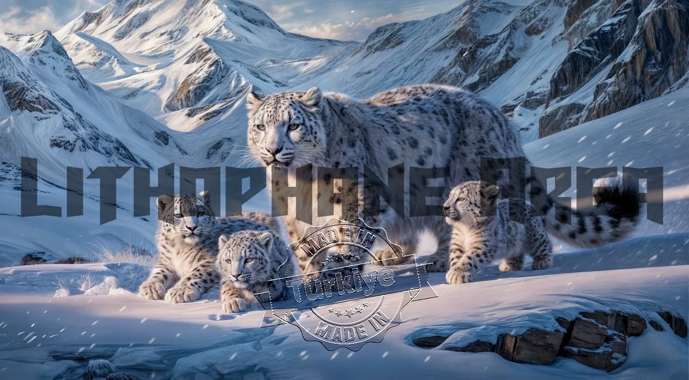 Mẫu “Leopar ve Kış” (Leopar và Mùa Đông) với chủ đề mùa đông và hình ảnh báo tuyết giữa khung cảnh núi non. Phù hợp để in lithophane trang trí, tạo hiệu ứng đẹp khi có đèn chiếu từ phía sau.