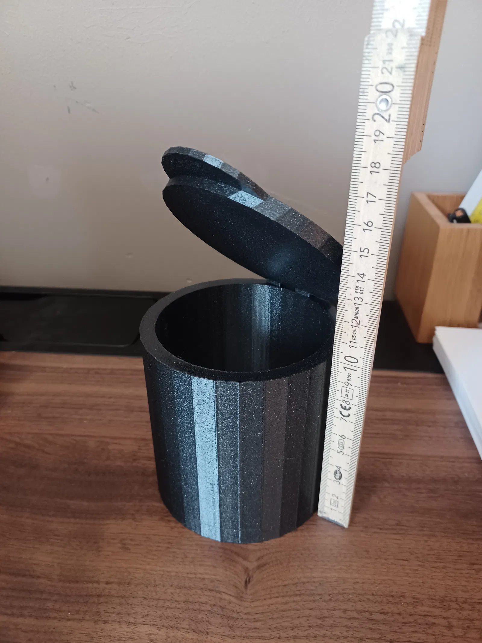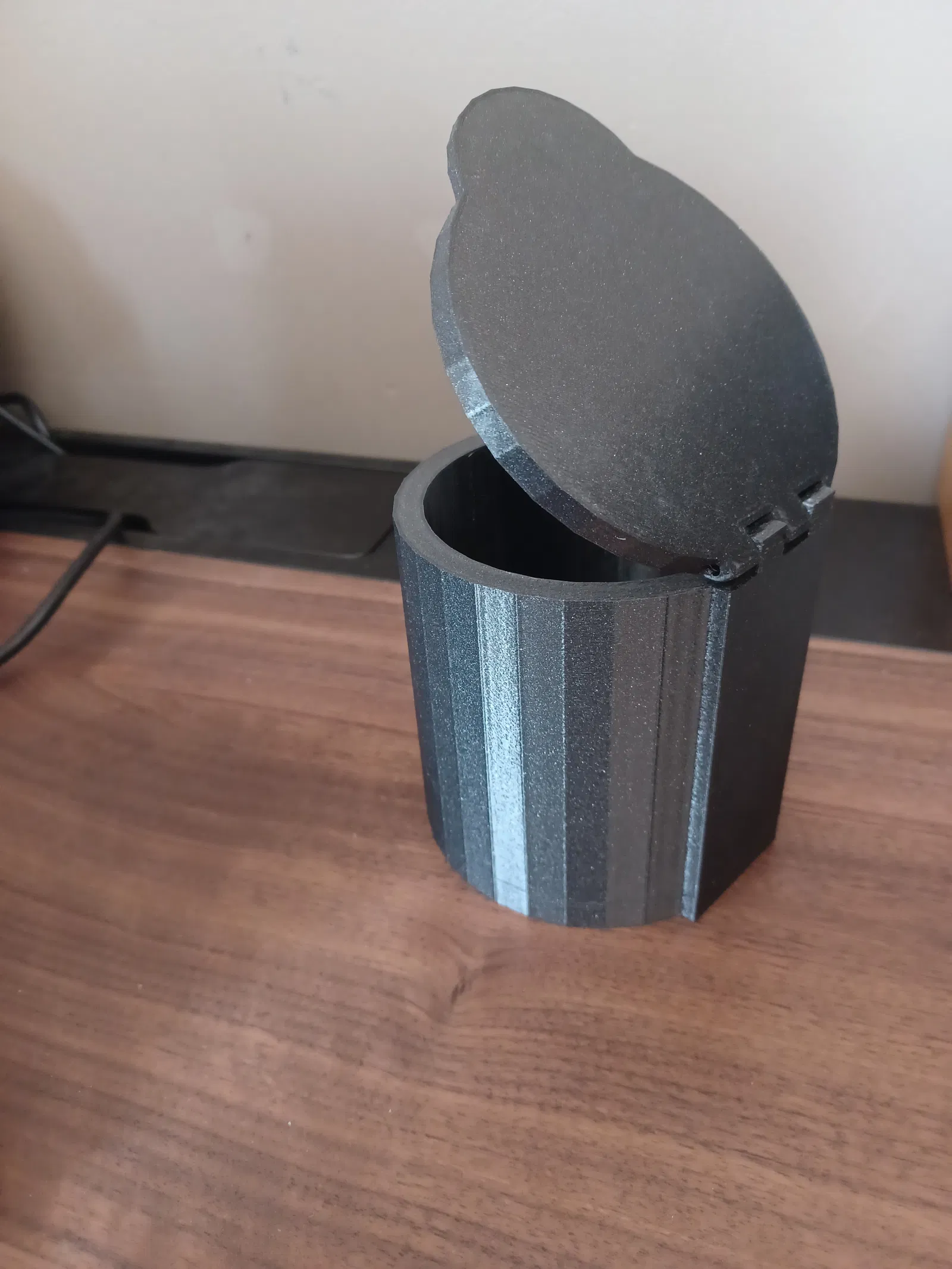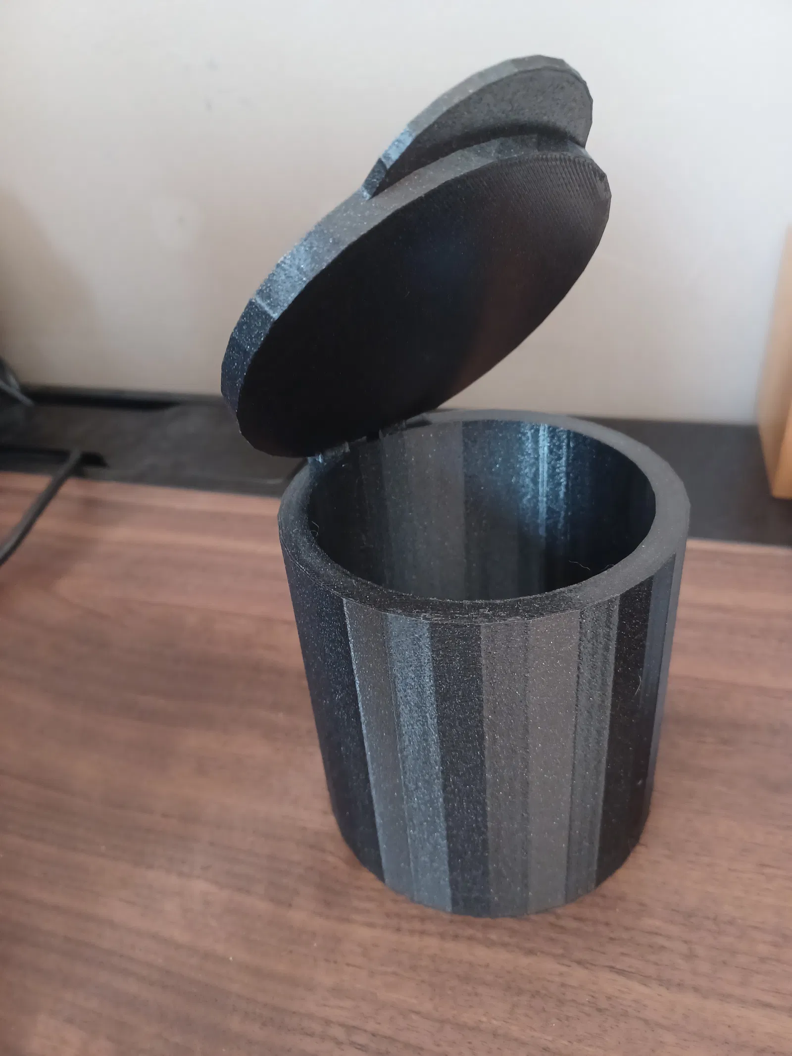 Mẫu hộp tròn gồm thân hộp, nắp và chốt bản lề (2 mm hoặc 3 mm). Bạn có thể chọn chốt theo dung sai máy in: 2 mm khít hơn, 3 mm xoay mượt hơn. In dễ, lắp ráp nhanh, không cần keo hay ốc vít.