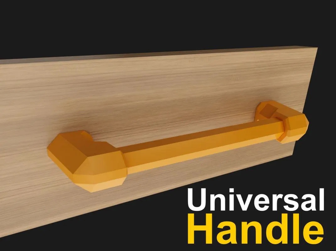 Tay nắm universal gồm cleat và bar, chỉnh chiều dài theo nhu cầu. Bar Hex có thể in 3D hoặc dùng ống/thanh Ø8/10/12 mm. Không cần support, tolerance 0.2 mm, phù hợp nhiều khoảng cách lỗ bắt vít.