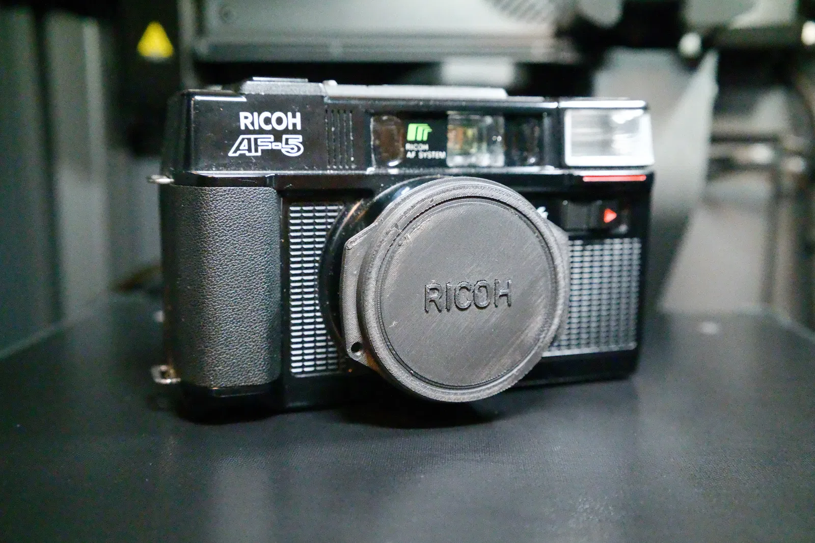 Mẫu nắp ống kính thay thế cho máy ảnh compact 35mm Ricoh AF-5. Thiết kế press-fit giống nắp zin, có lỗ xỏ dây buộc vào ngàm dây đeo. Có lưu ý in FDM và gợi ý setting OrcaSlicer để ra bề mặt đẹp.