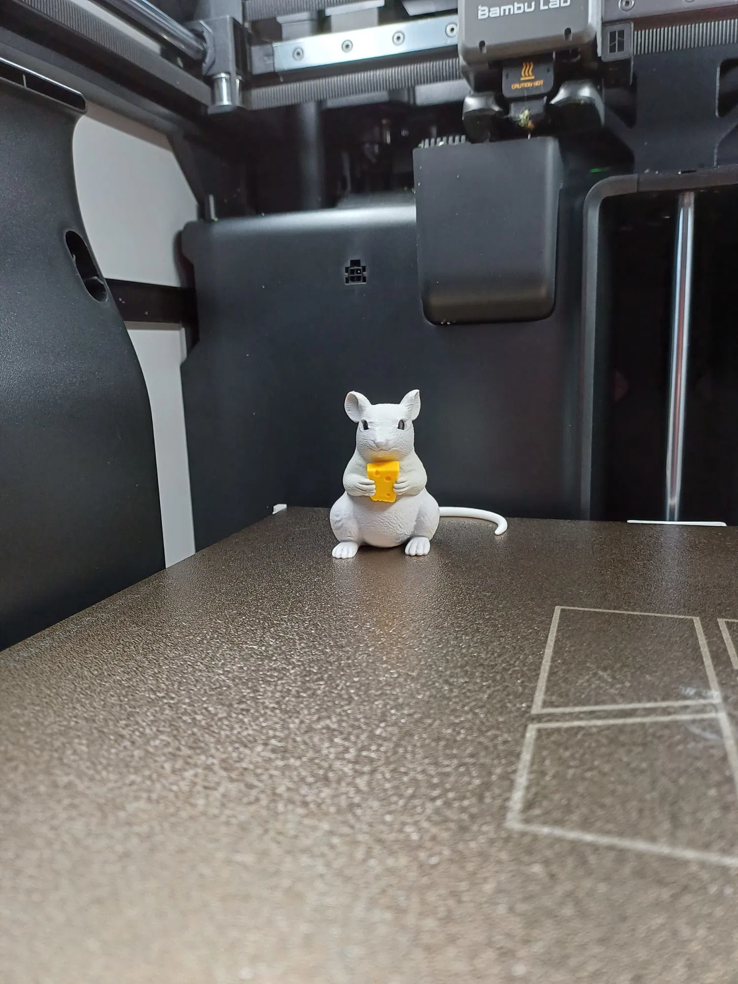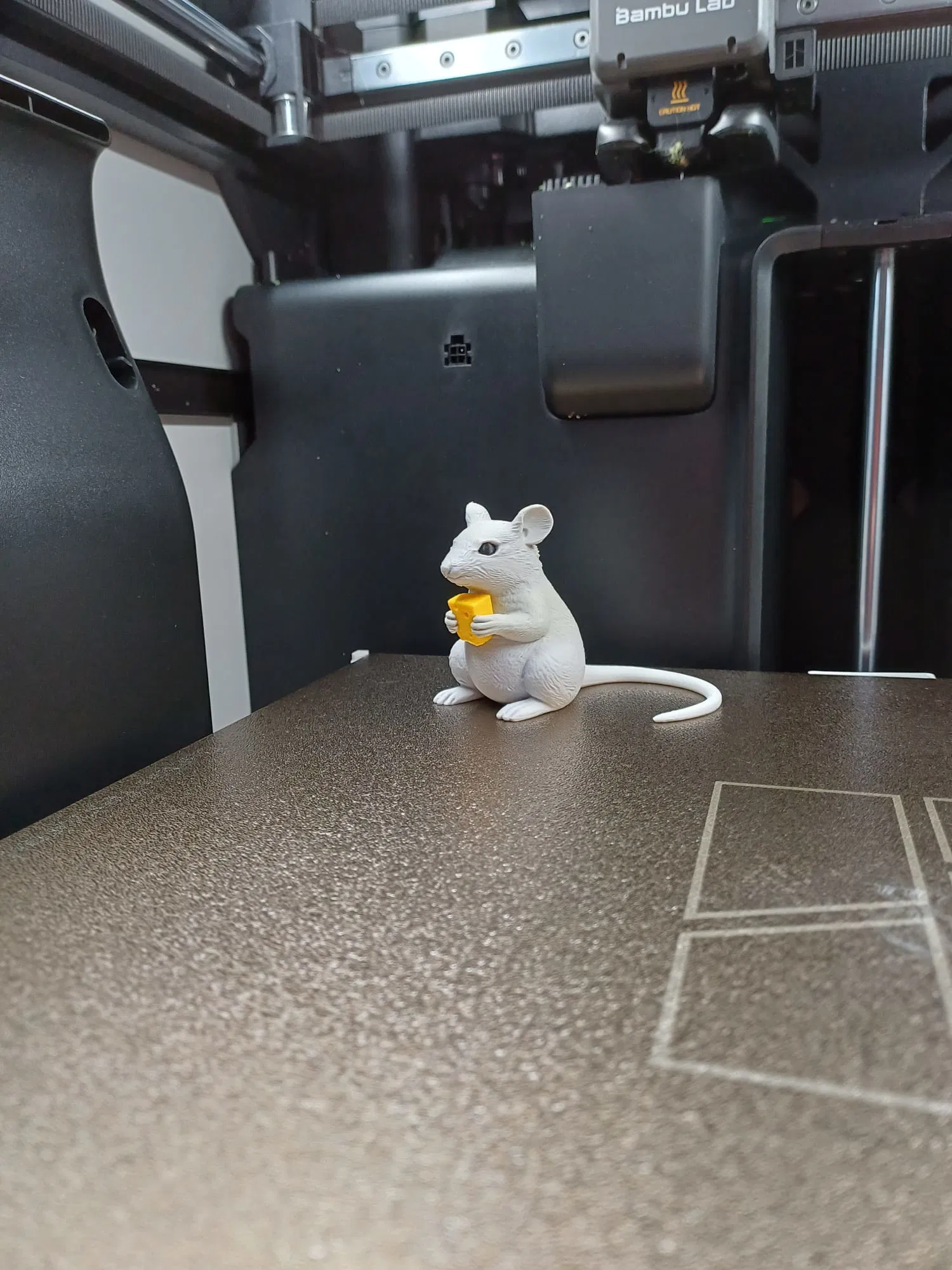 Chú Chuột Trộm Phô Mai nhỏ xíu bị bắt tại trận nhưng vẫn ôm chặt miếng phô mai. Mẫu dễ thương, hài hước, in nhanh để làm bạn để bàn hoặc trang trí kệ. File 3mf có màu, STL tự tô.