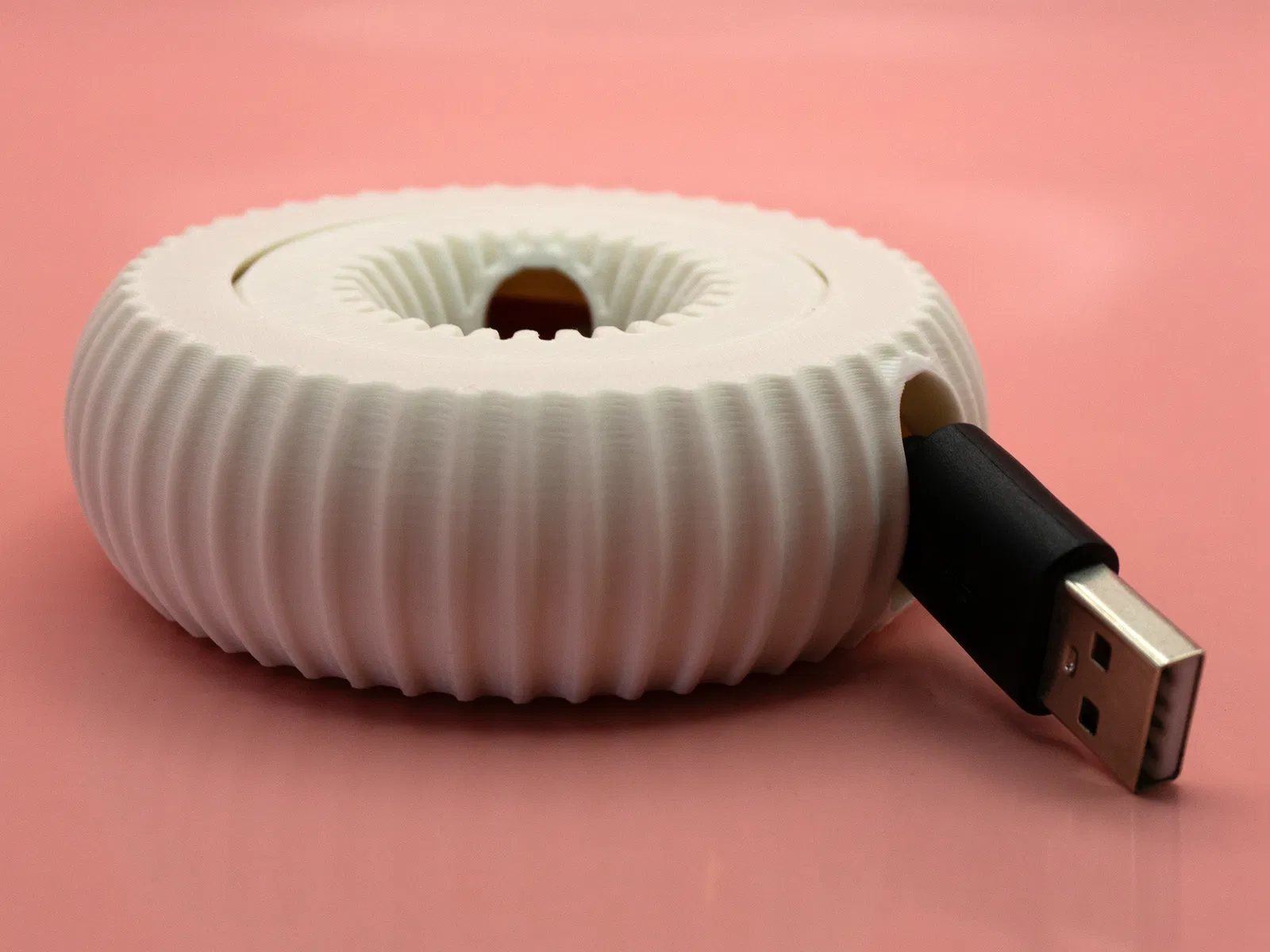 Bề mặt ngoài dạng gân giúp cầm nắm dễ và xoay tiện, còn thiết kế quấn bên trong giúp giữ dây chắc chắn, cất gọn và bảo vệ tốt. Một bản in functional gọn đẹp, nhìn “xịn” và giải quyết đúng một vấn đề dùng hằng ngày.