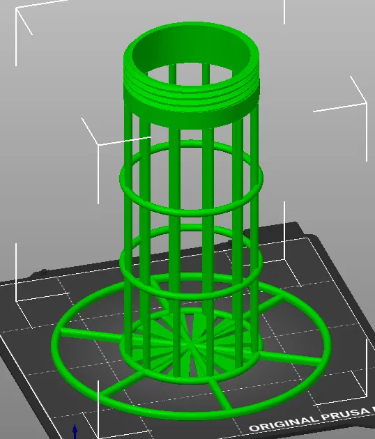 Ich habe zuerst diese Konstruktion von Thingiverse verwendet, aber der Druck ist schwiereig. Dann aber eine neue konstruiert (den Deckel bitte von Thingiverse nehmen).