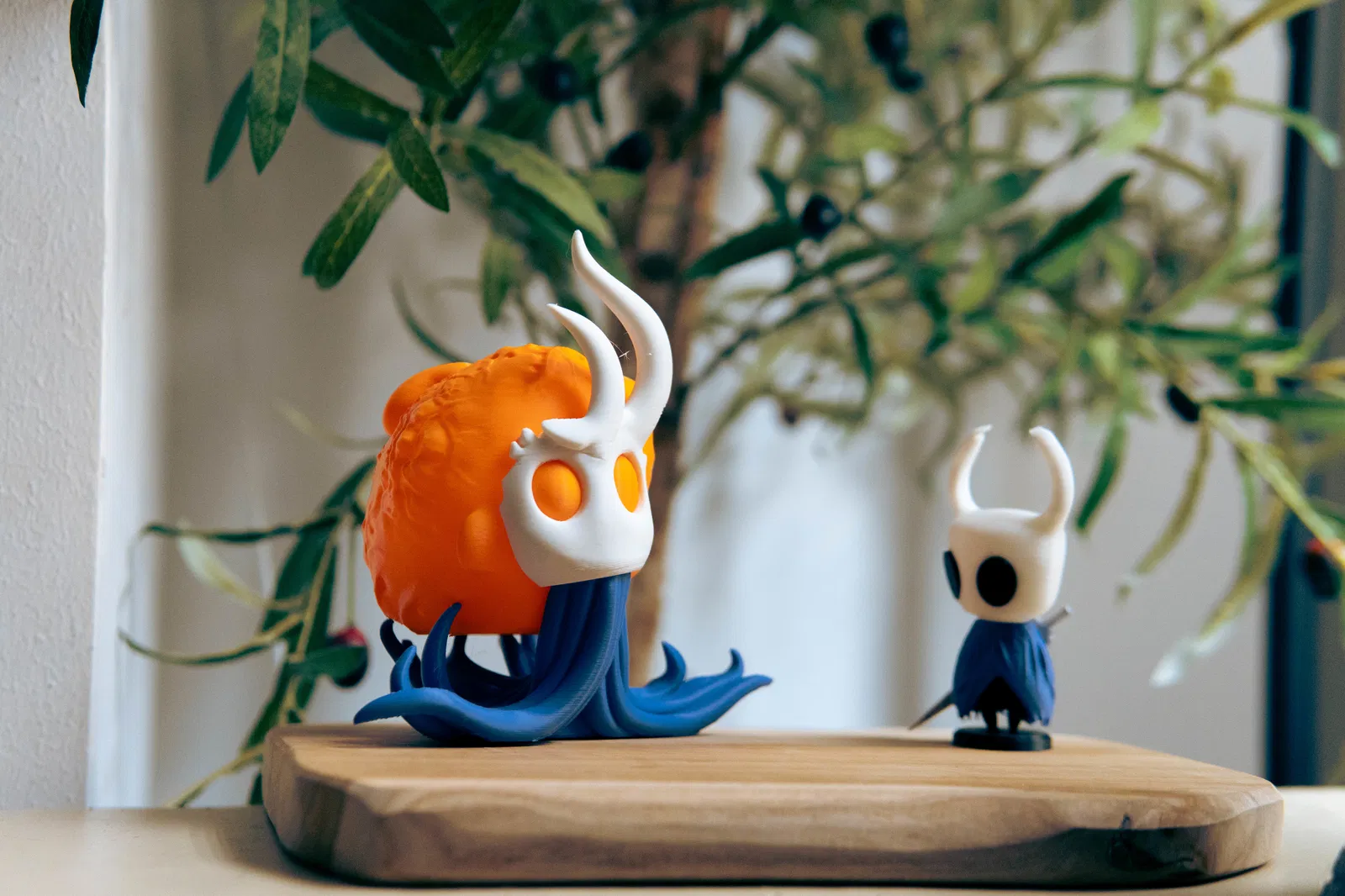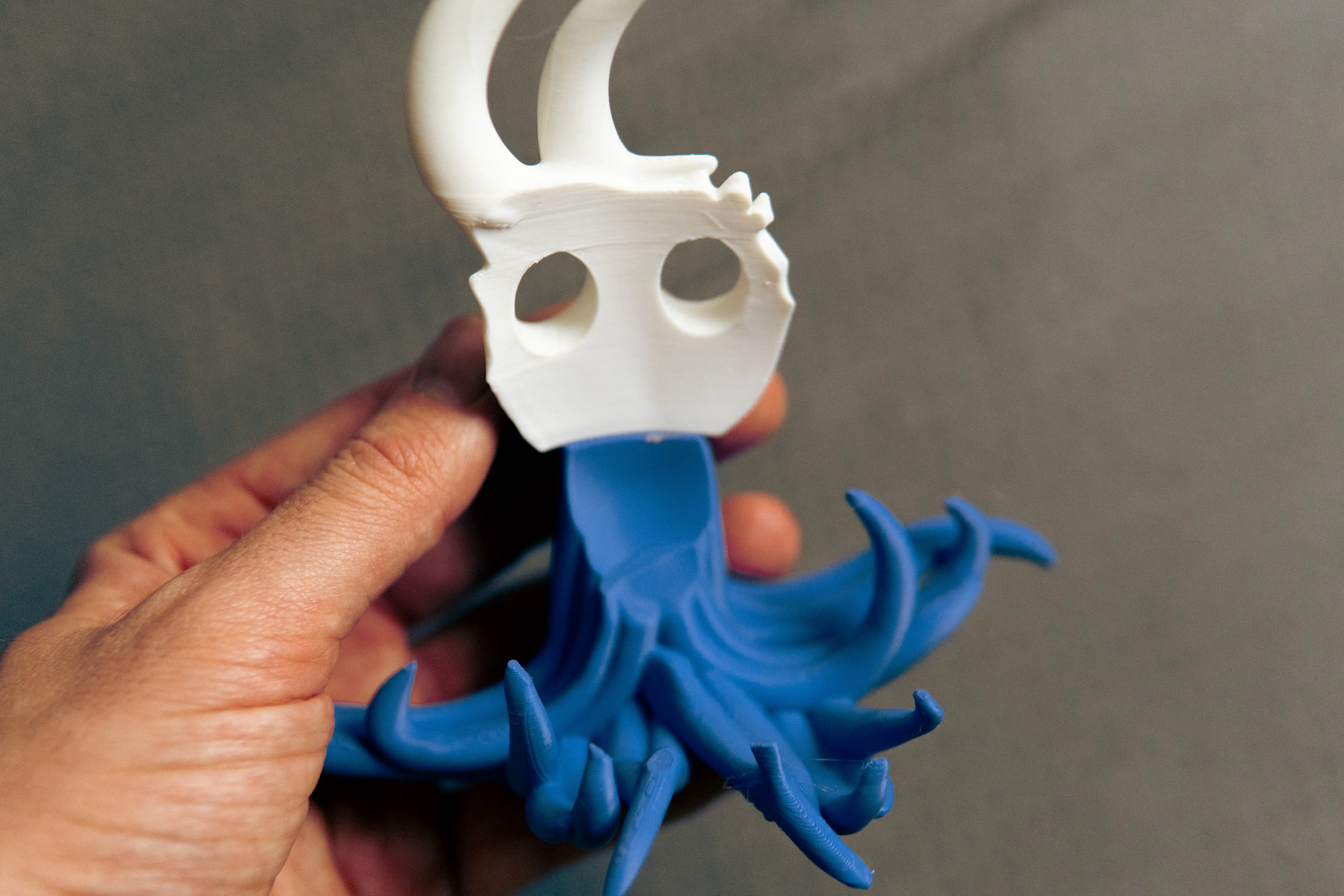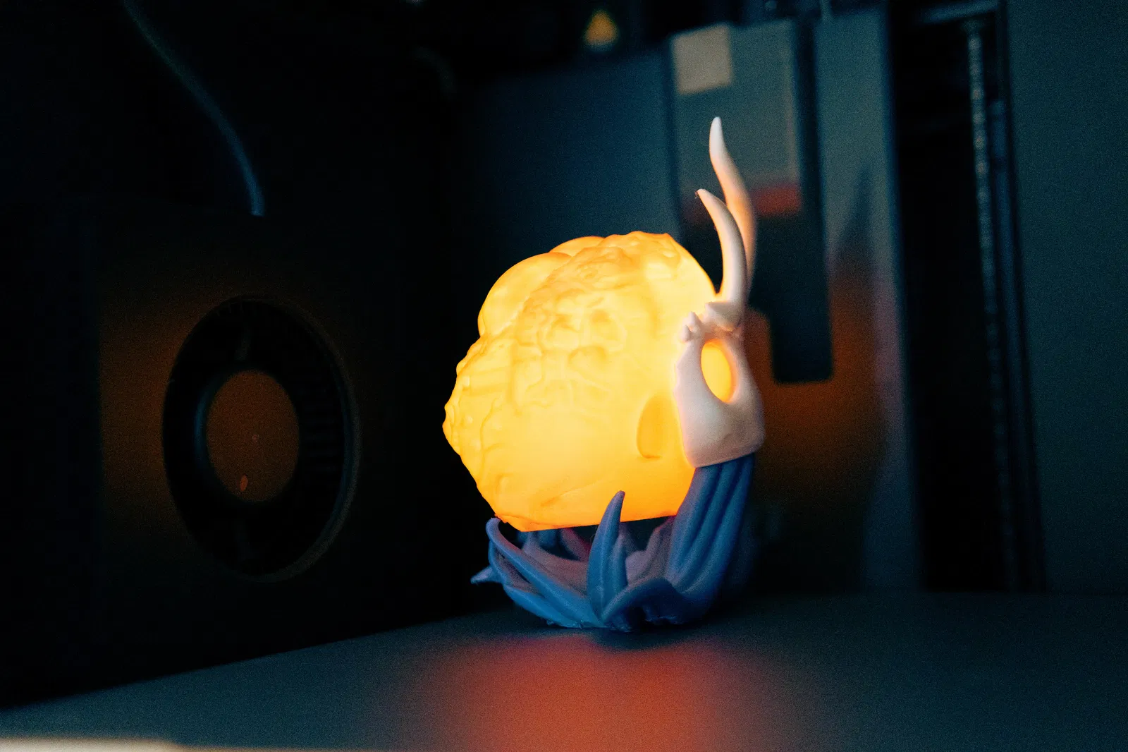 Tượng Broken Vessel (Hollow Knight) có thể phát sáng nhờ gắn tealight 37mm từ BambuLab maker supply. Lắp ráp đơn giản: lắp mặt–infection, canh áo choàng rồi dán keo; phần infection tháo ra được để thay pin.