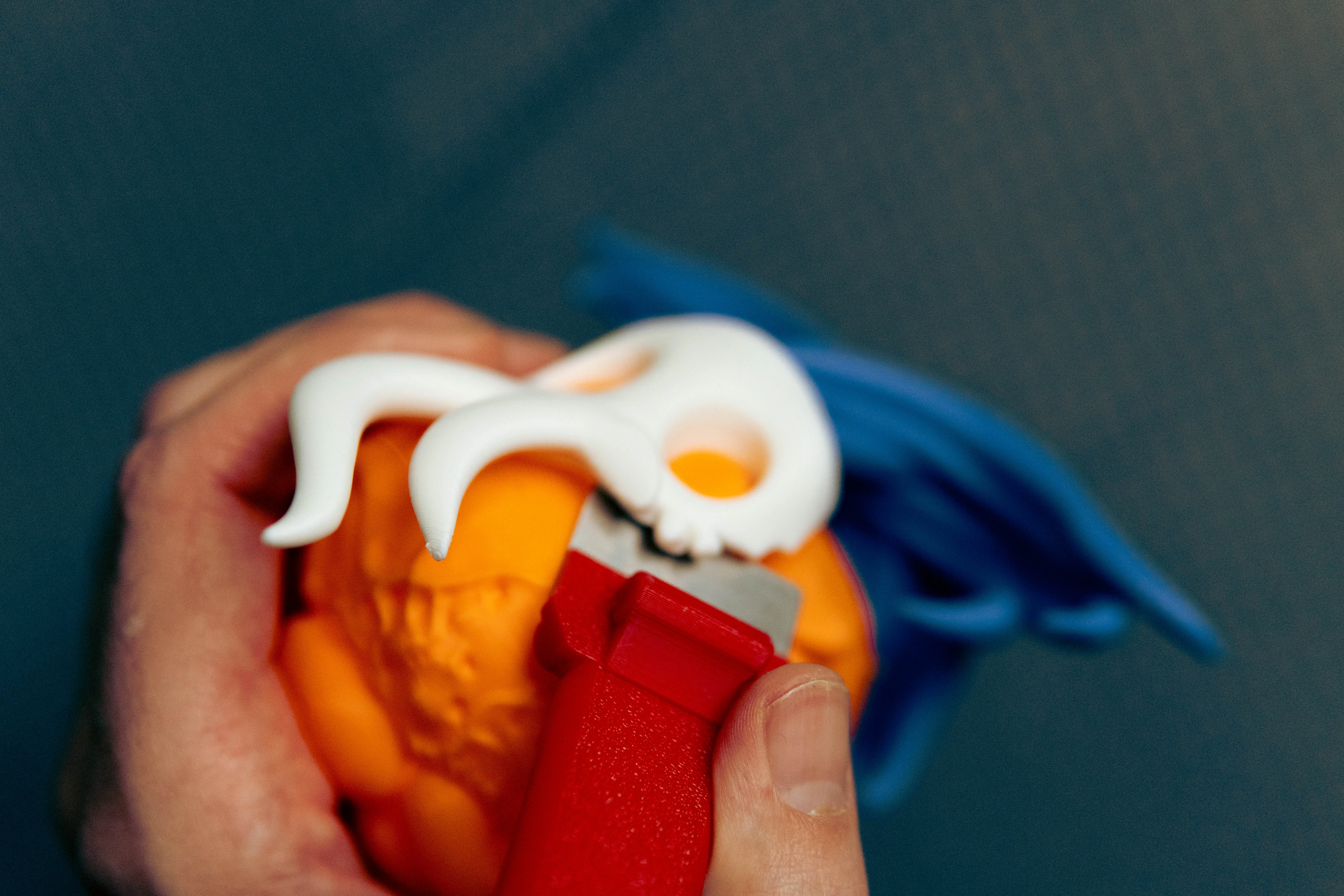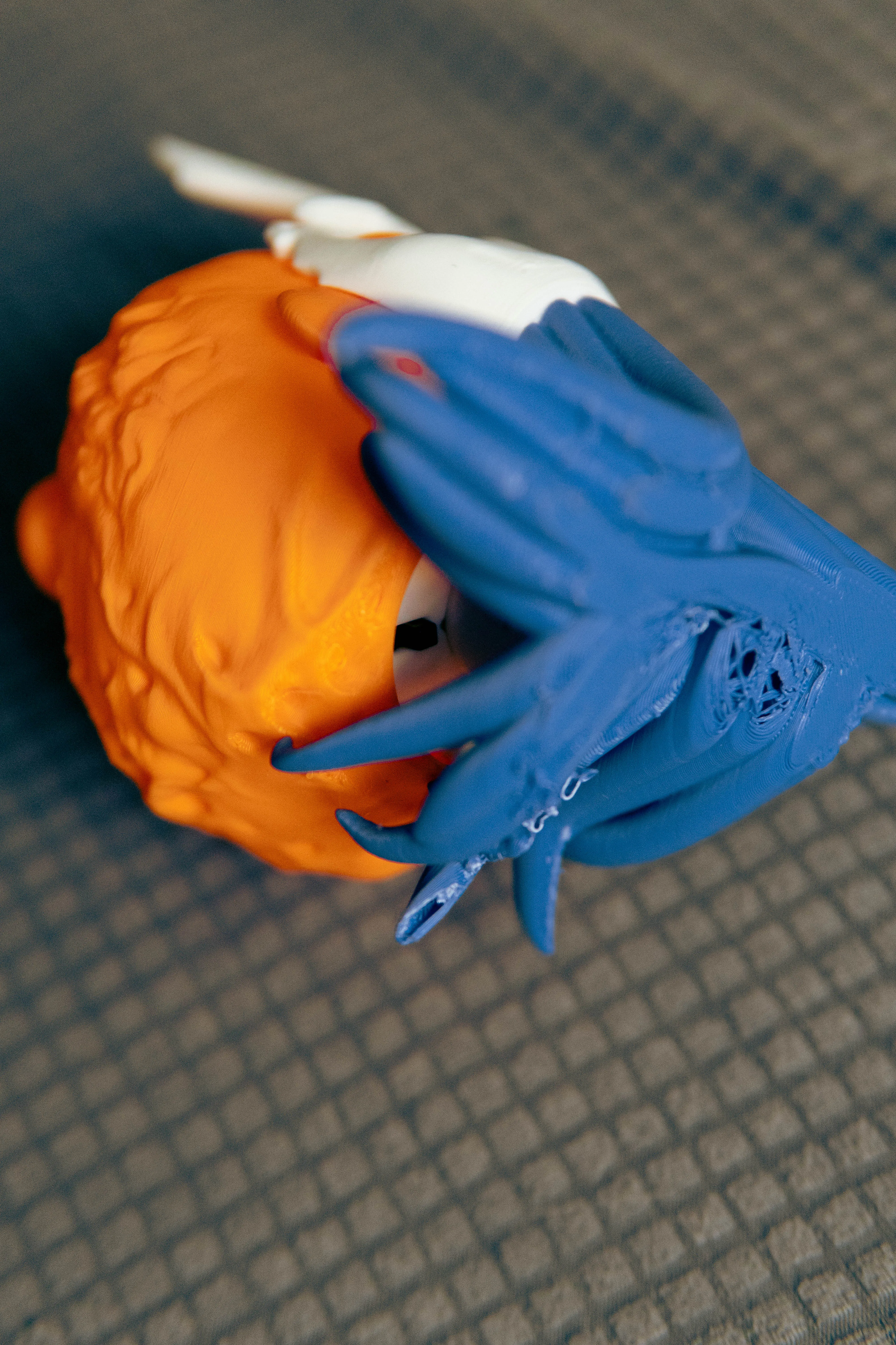 Lắp ráp rất dễ: chỉ cần gắn phần mặt màu trắng vào chi tiết infection màu cam. Tiếp theo, đặt cái áo choàng vào; xoay chỉnh một chút là nó sẽ tự khớp đúng vị trí.