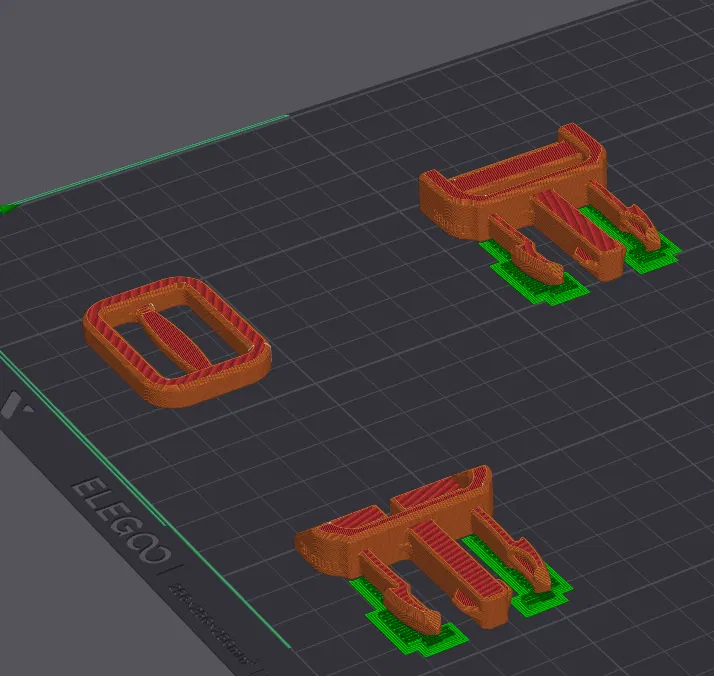 Khuyến nghị wall thickness là 3 layers, top & bottom 1mm, infill 15% — không cần in dày hơn vì đó đã là giới hạn độ dày của các móc.