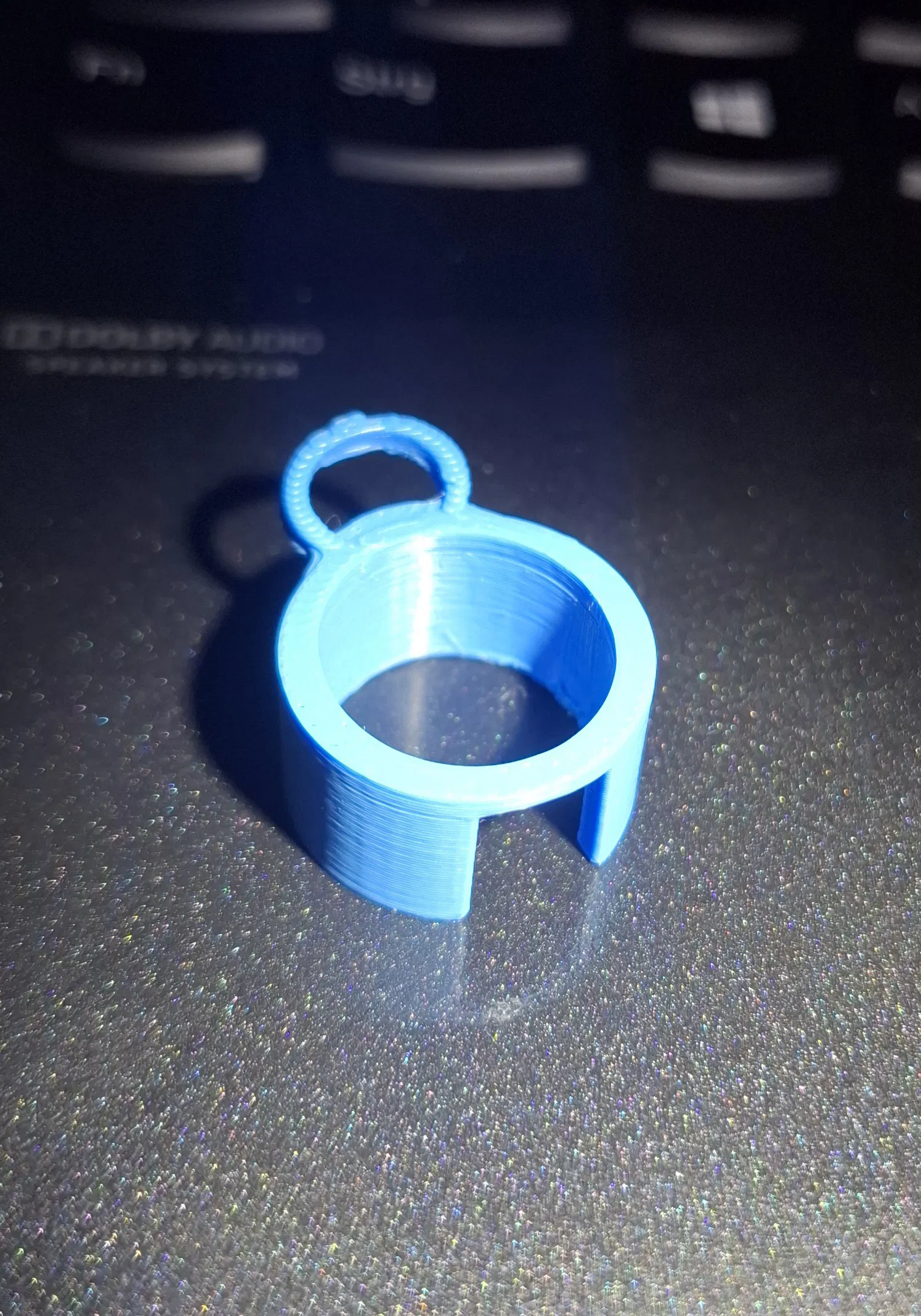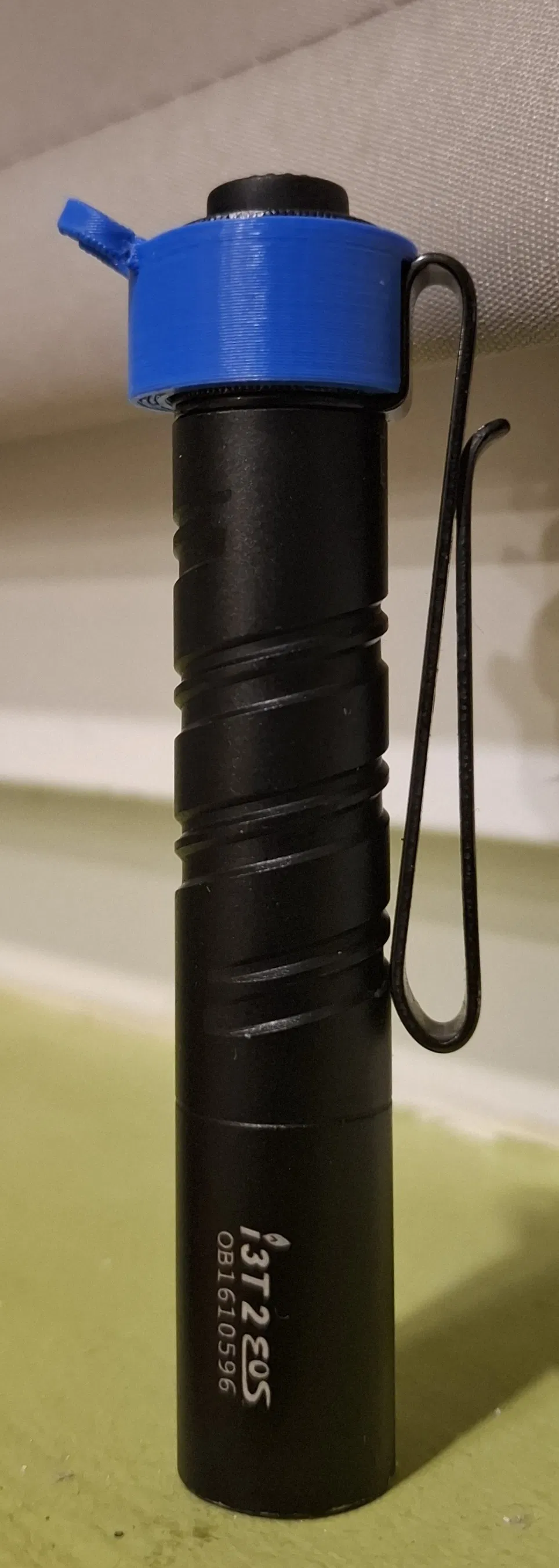 Mẫu in nhanh giúp luồn vào phần đuôi Olight I3T2 EOS để biến đèn thành móc khóa. Gắn vào keychain thì khó tuột nhưng vẫn tháo/lắp dễ. Vòng xỏ keyring ở cuối khá bền, test chỉ gãy khi dùng kềm.