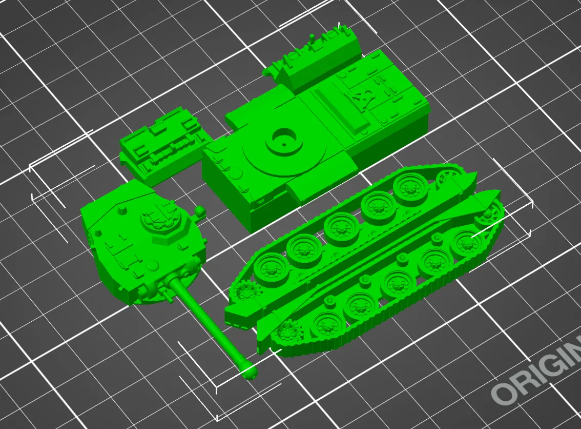 Đây là phiên bản remix từ mẫu xe tăng Comet rất đẹp của M. Bergman. Để dễ in hơn trên máy Mk4 của mình, mình đã tách model ra thành nhiều phần và sắp xếp theo cách mình thấy hợp lý. Mình cũng rescale về HO Scale (1/87) để có thể chơi chung với mô hình tàu hỏa, và thêm các ngàm/hốc để gắn nam châm 6x3mm giúp tháp pháo có thể xoay.