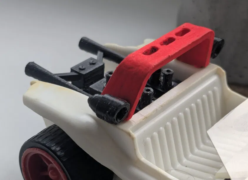 Motor được làm dạng 2 phần (bản gốc chắc là 1 phần) để dễ in và dễ ráp hơn. Khung có đèn cũng được chỉnh lại để có thể đặt mặt phẳng phía trước nằm thẳng trên bàn in.