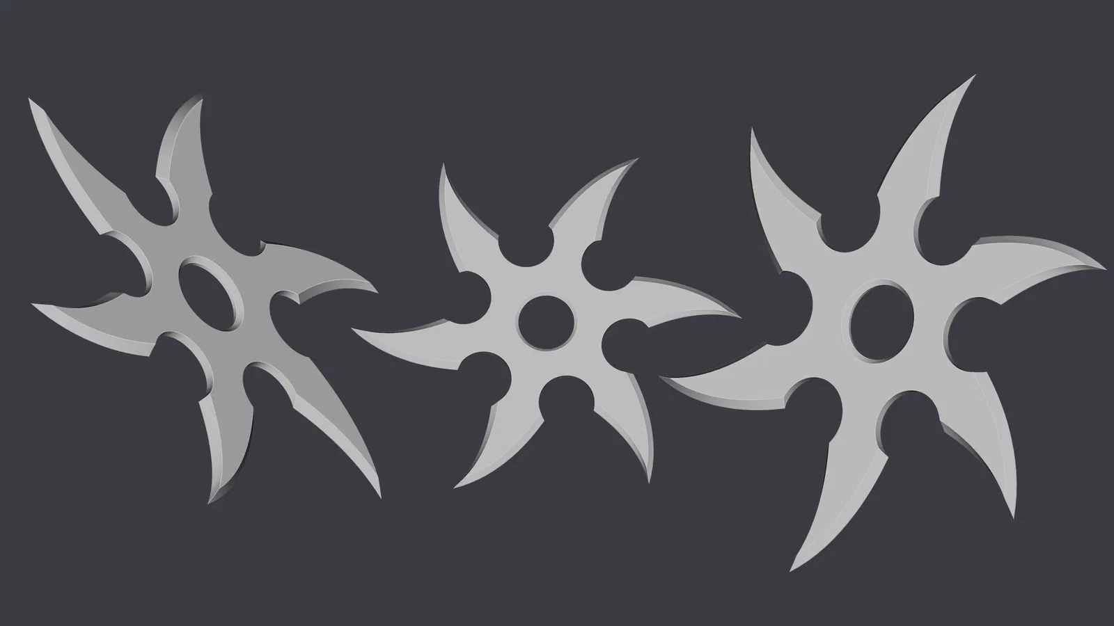 Mẫu 3D in được này là một phi tiêu ninja (shuriken) 6 cánh cong với đường kính 15 cm. Các lưỡi được bẻ góc tạo cảm giác mạnh, “chiến” hơn, đồng thời giúp giữ độ ổn định khi xoay lúc ném.