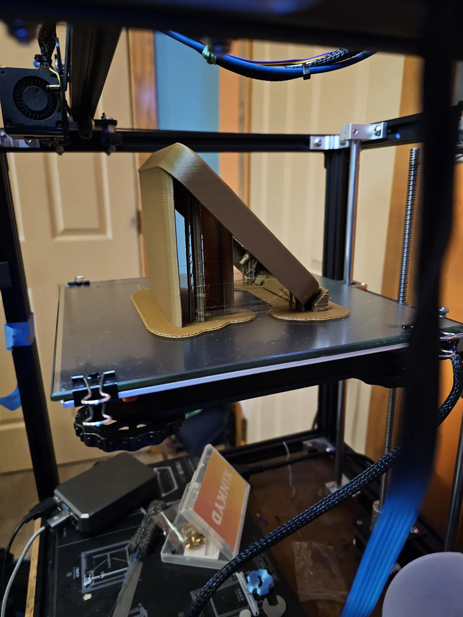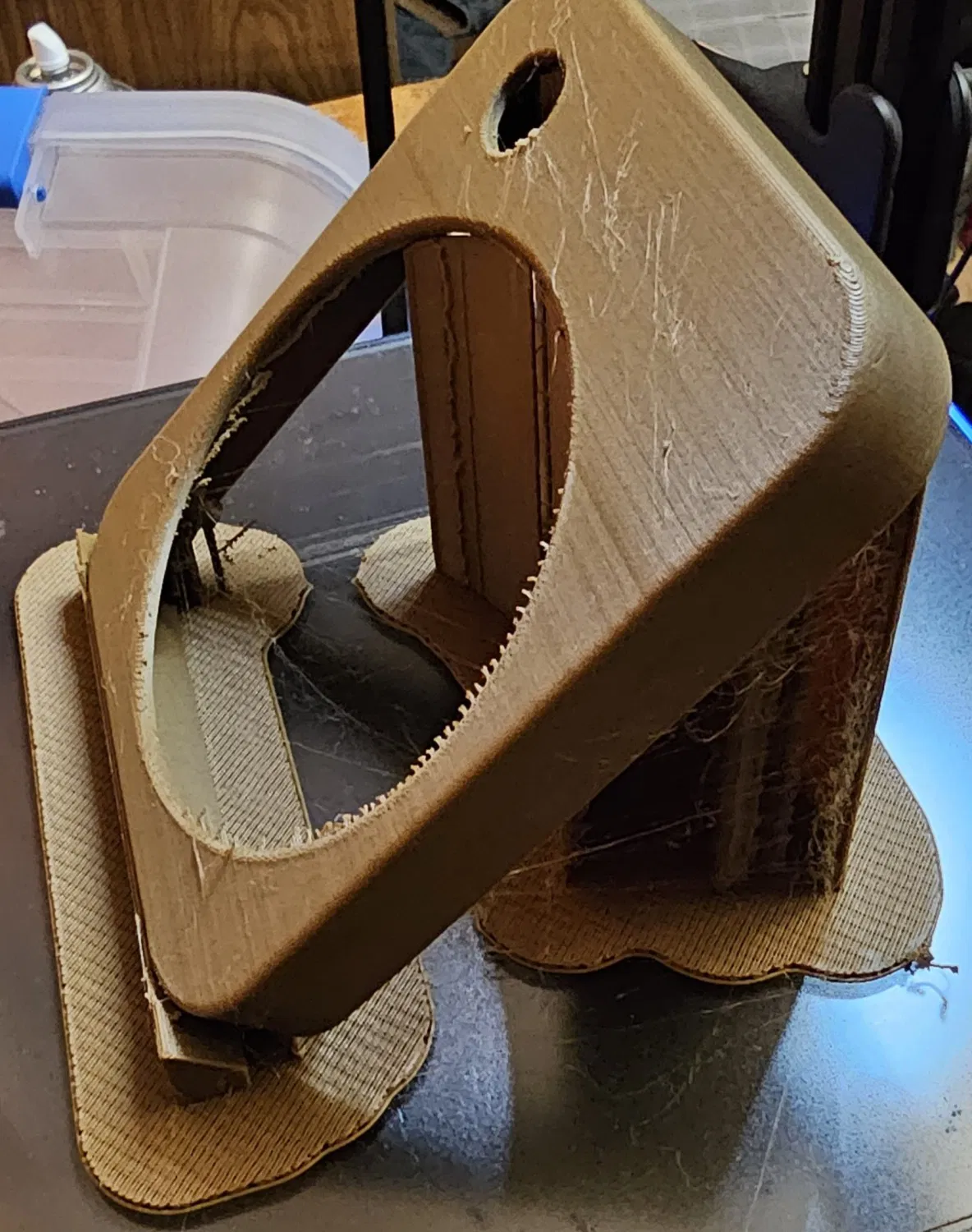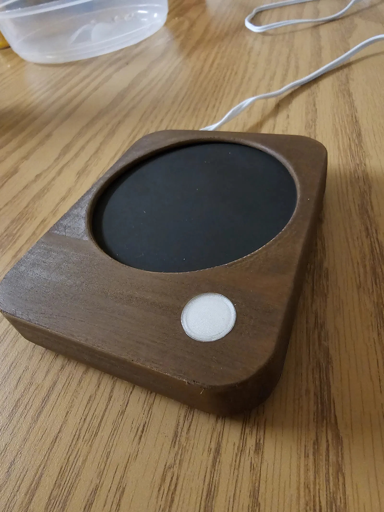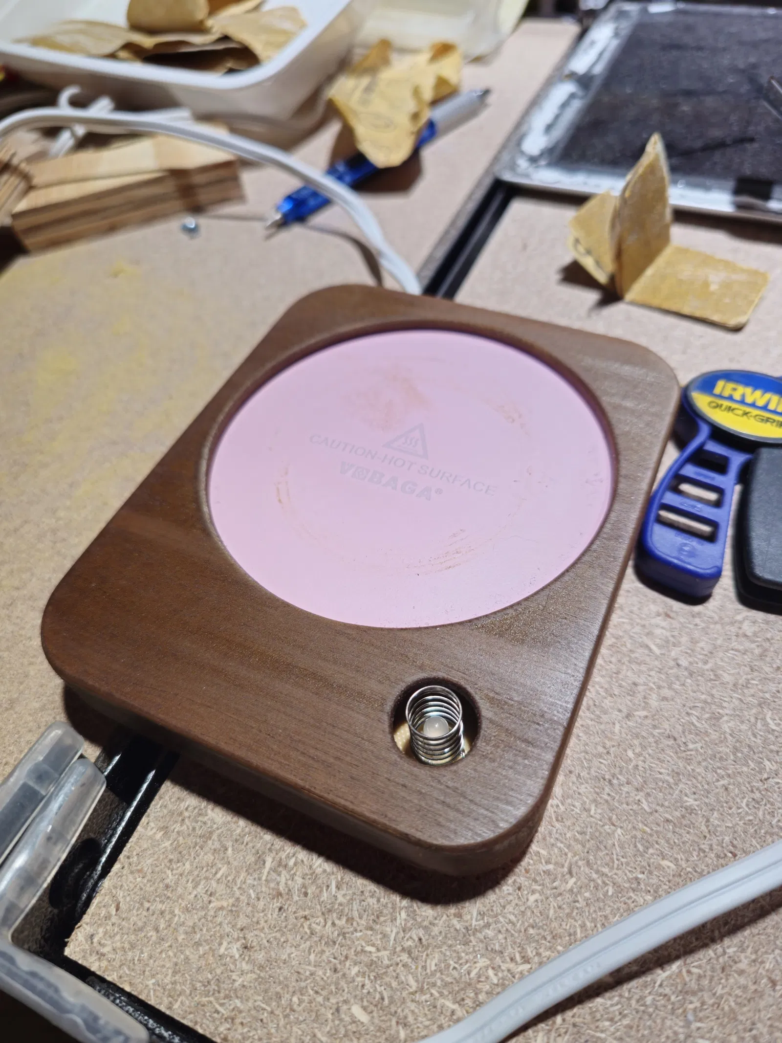 Tôi đã tìm thấy tấm nóng này cho siêu rẻ trong một cửa hàng và quyết định sẽ là một dự án tốt để tìm hiểu thêm về Fusion 360. Tôi đã in vỏ thay thế ra khỏi gỗ và sau đó chà nhám và nhuộm màu. Nút được in ra khỏi PEGT rõ ràng. Tôi cũng phun sơn mảnh kim loại nóng lên bằng sơn nhiệt cao. Tôi cũng đã in nó đứng lên để có được hạt để trông đúng.