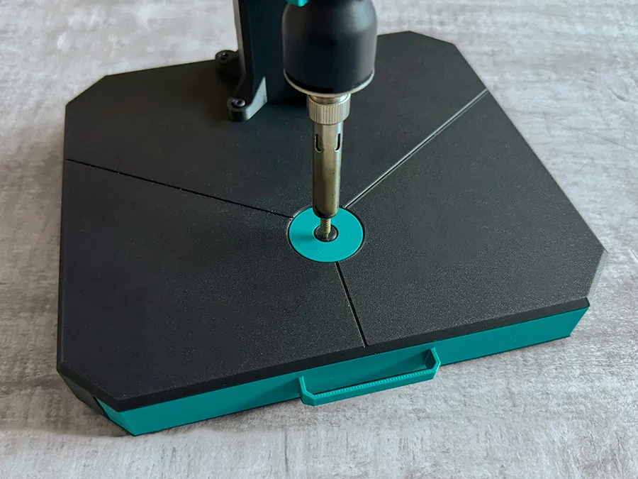 Khi mọi thứ đã khô và chắc chắn, bạn có thể bắt thân heat press vào base bằng 4 con ốc.