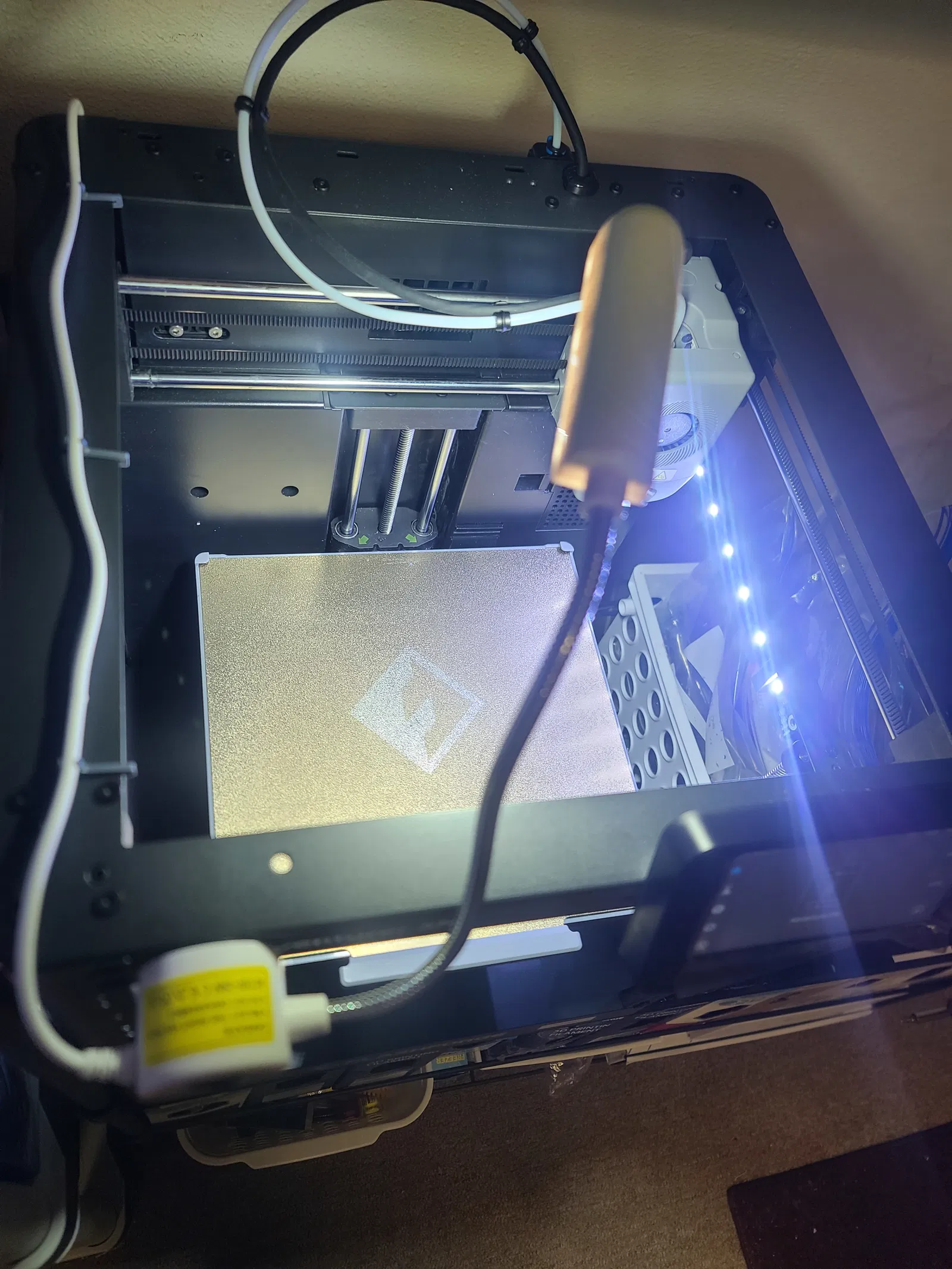Bộ kẹp cáp in 3D dành cho AD5M, giúp cố định dây của đèn máy may mua trên Amazon. Thiết kế đơn giản, dễ lắp, và nhiều khả năng cũng phù hợp với các loại dây đèn LED tương tự.
