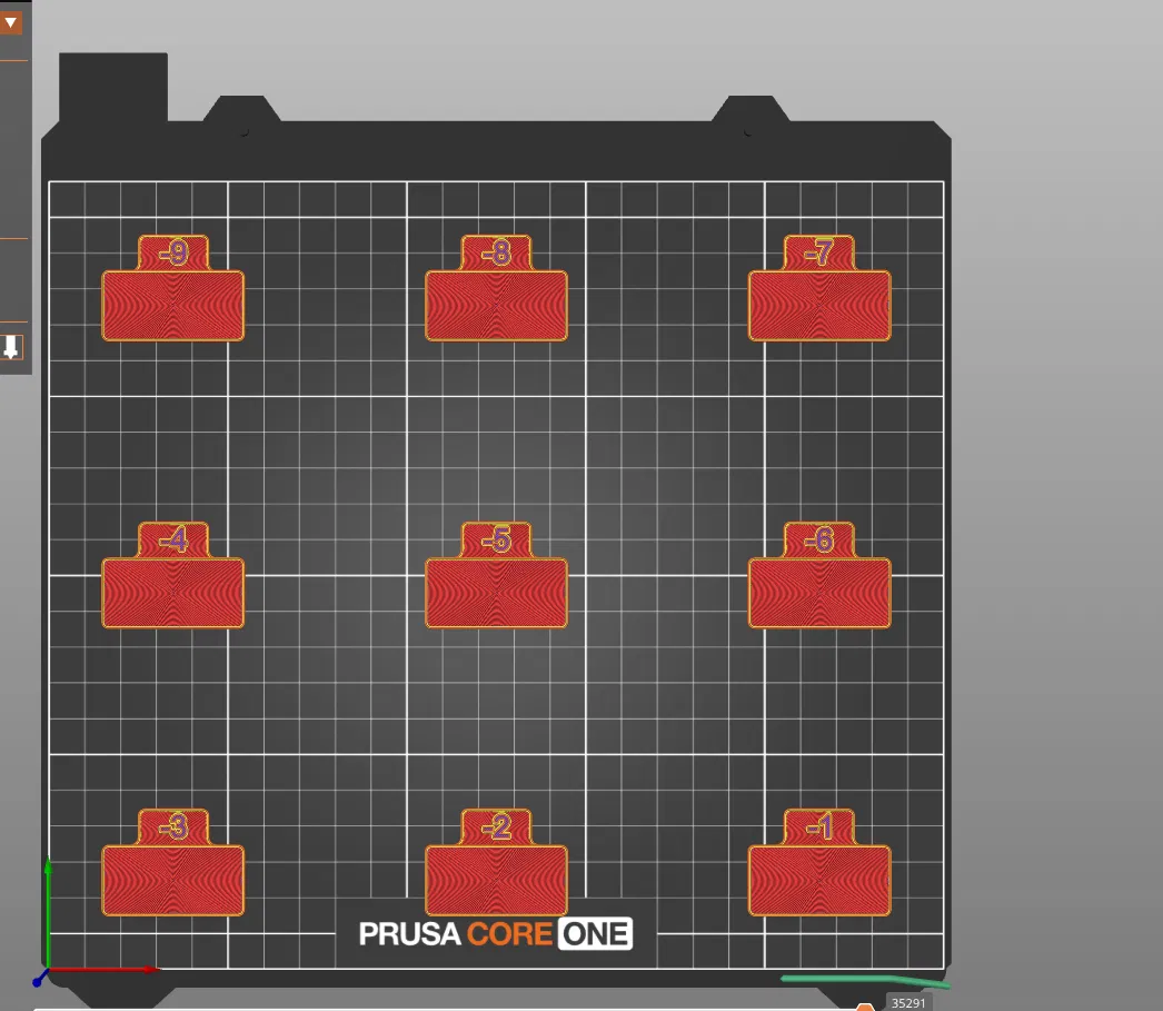 Bài test calibration này sẽ in ra nhiều mẫu khác nhau với các mức extrusion multiplier khác nhau, giúp bạn có nhiều mẫu để phân tích và chọn ra kết quả ổn nhất. Khi bạn đã hài lòng với giá trị calibration, nhập giá trị đó vào mục extrusion multiplier trong slicer (PrusaSlicer).
