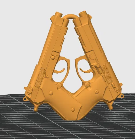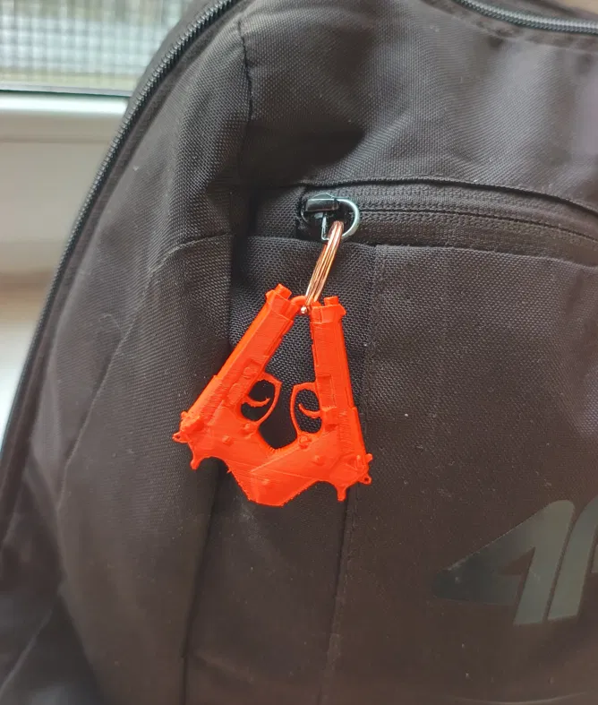 Charm Dual Berettas CS2 lấy cảm hứng từ mẫu súng trong Counter-Strike 2, dùng để treo túi hoặc làm móc khóa. Trước khi in 3D, bạn nhớ scale (phóng to) mẫu lên cho đúng kích thước mong muốn.