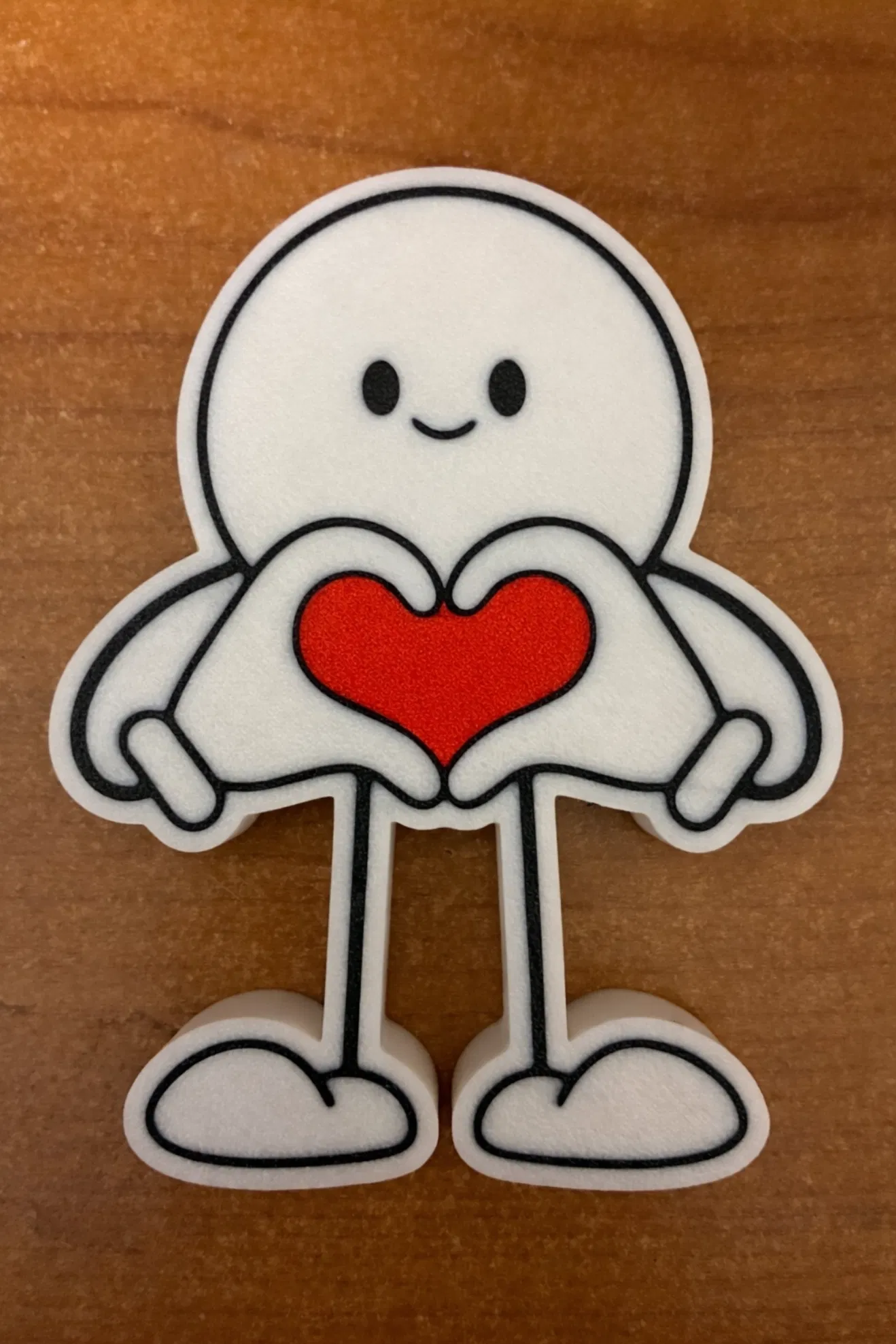 Mẫu thể hiện một nhân vật nhỏ được cách điệu, phía trên đầu có những trái tim, tượng trưng cho tình yêu, sự thương mến và cảm giác đang yêu.