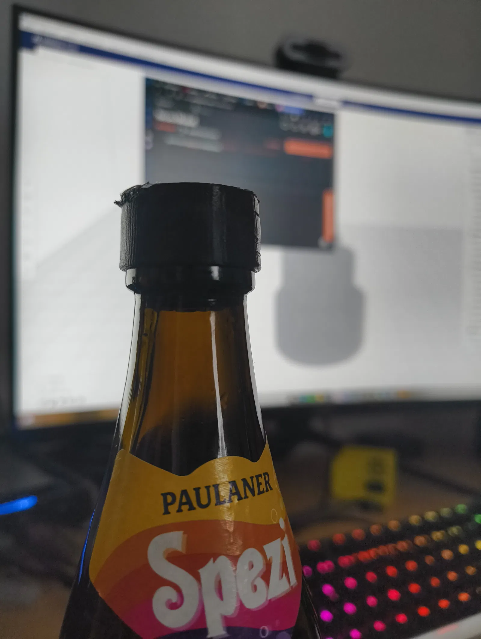 Nắp TPU cho chai dùng nắp kronkorken (bia, Spezi, radler...). Có 2 cách dùng: chống côn trùng/chống đổ khi uống, và khóa kín 100% cho chai đã uống dở khi vận chuyển đường xóc. File chỉ có STL.