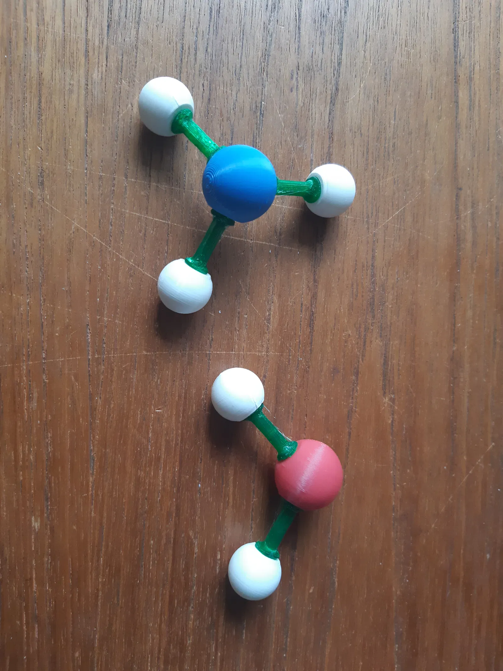 Bản remix cho bộ molecular kit gồm 2 file: atom ball 2 lỗ (oxygen) và atom ball 3 lỗ (nitrogen), các lỗ đặt theo góc khoảng 109°. Dù góc chưa thật sự chuẩn (105–107°), vẫn đủ dùng cho mô hình phân tử.