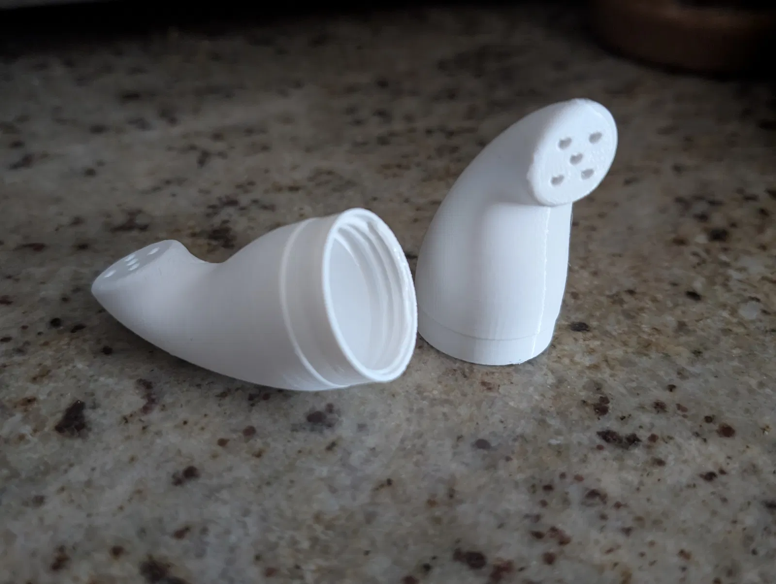 In bằng PETG. Vật liệu này có thể kín nước, và có thể khử khuẩn bằng cồn isopropyl 70% mà không bị xuống cấp. ĐỪNG in bằng PLA nếu bạn định khử khuẩn bằng cồn, vì bề mặt sẽ bị phá hủy và có thể gây rò rỉ, hoặc tệ hơn là xịt vi nhựa vào mắt hay vùng bị ảnh hưởng. Mình khuyên nên thay mới sau một thời gian dùng nhiều để tránh vi khuẩn phát triển nếu bạn không khử khuẩn bằng cồn.