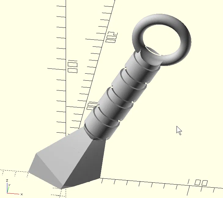 Mình có làm một bản remix của mẫu Kunai của Val bằng OpenSCAD và chuyển nó thành nam châm dán tủ lạnh.