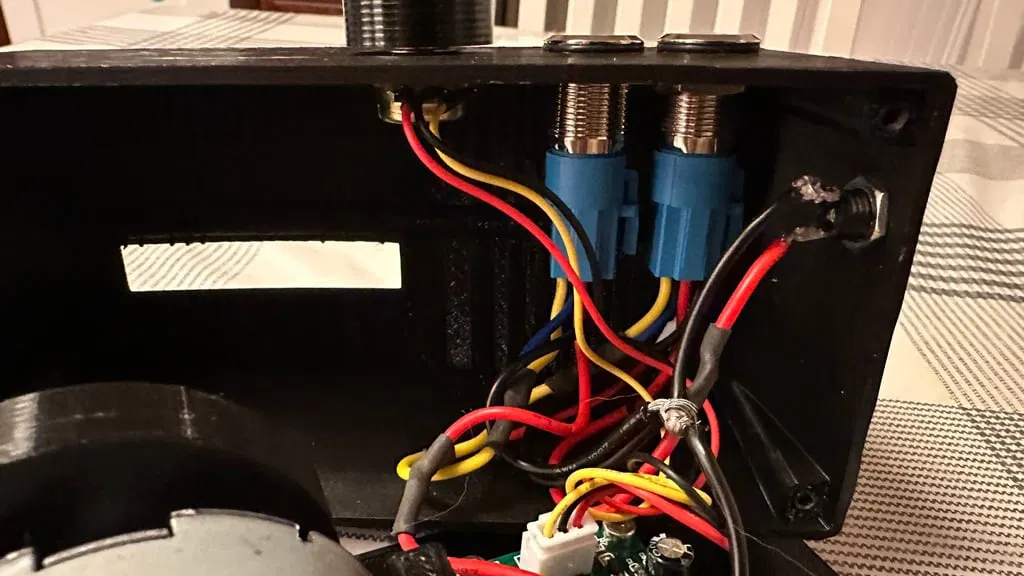 Đây là phiên bản đế máy Wave motion machine cho DIY của mình. Bản này có chỉnh tốc độ (variable speed) và có thêm LED strip. Nguồn cấp dùng adapter 15V. Mẫu được lấy cảm hứng từ video của Techmoan và Hughes Wave Motion Machines LLC: xem tại đây: