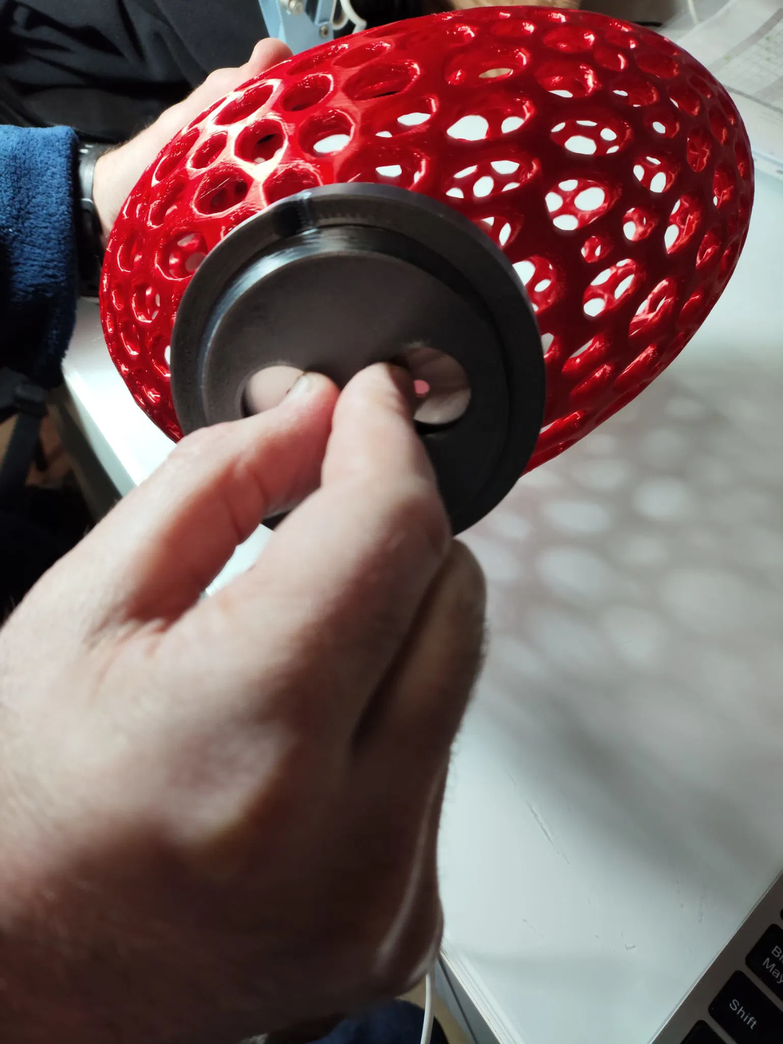 Phần ren thiết kế trong Fusion rất khít, nên trên một số máy in khác mình đã gặp trục trặc. Vì vậy, mình đề xuất bạn in thử riêng phần đế trước để xác nhận ren hoạt động ổn.