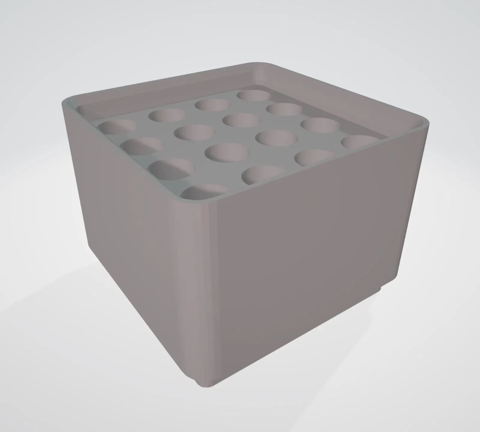 Khay/giá giữ nozzle cho Elegoo Centauri Carbon theo chuẩn Gridfinity 1x1, chứa được 16 nozzle. Phù hợp để sắp xếp nozzle gọn gàng, dễ lấy và quản lý trong khu vực in 3D.