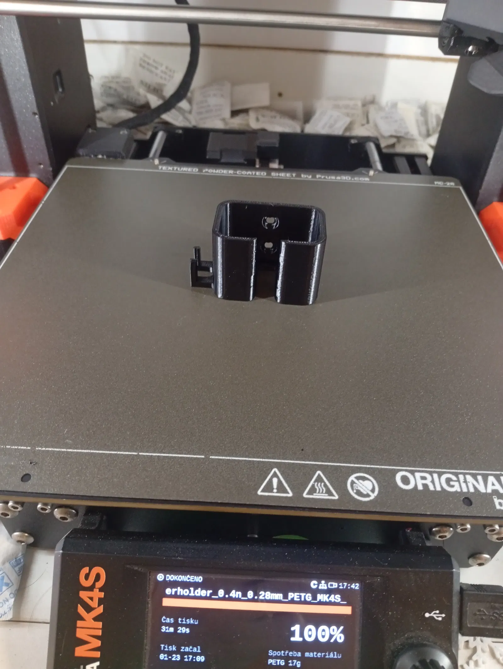 Mình cứ hay phải đi tìm sạc điện thoại với mớ dây cáp trong văn phòng, giờ thì khỏi tìm nữa. Ở ngàm giữ bên hông mình gắn micro USB, còn trong củ sạc thì để USB C. In không cần support bằng PETG, PLA cũng xài được.