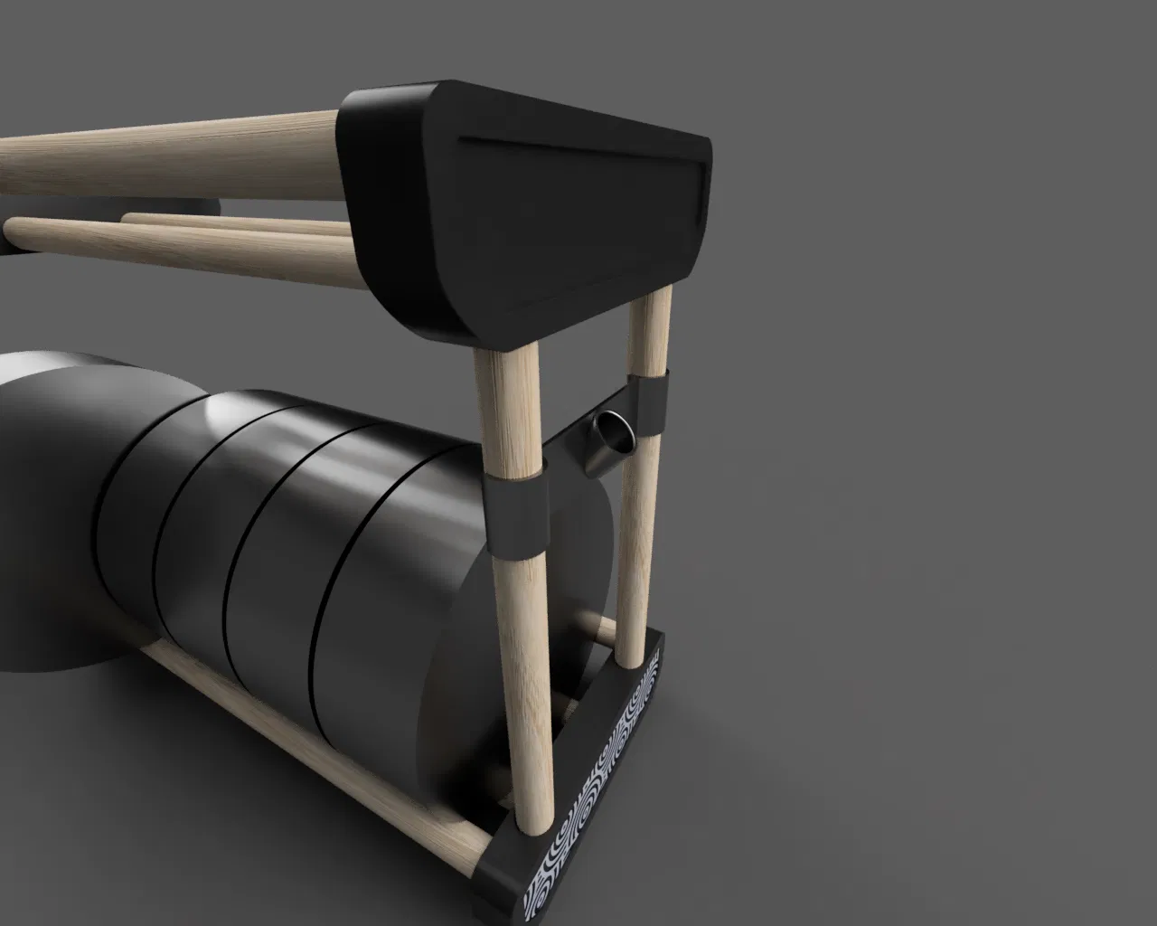 Một cái giá đỡ cuộn filament đơn giản, xếp chồng được, dùng các thanh gỗ đường kính 20 mm.