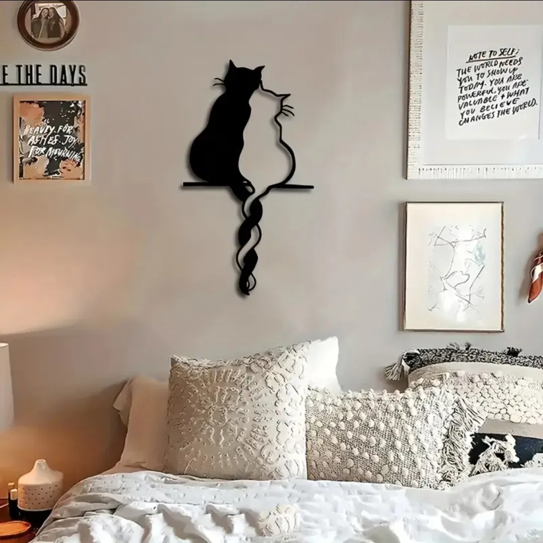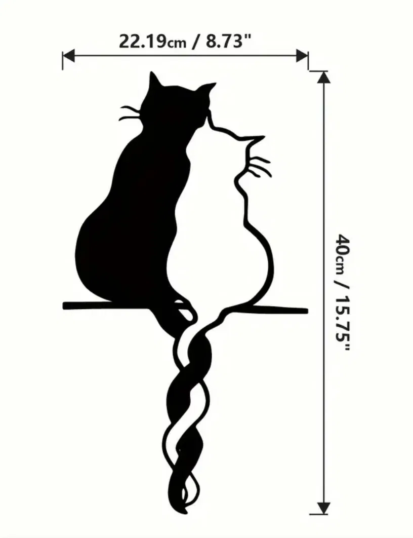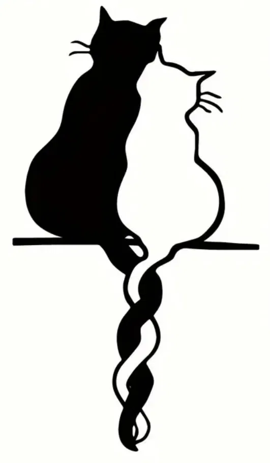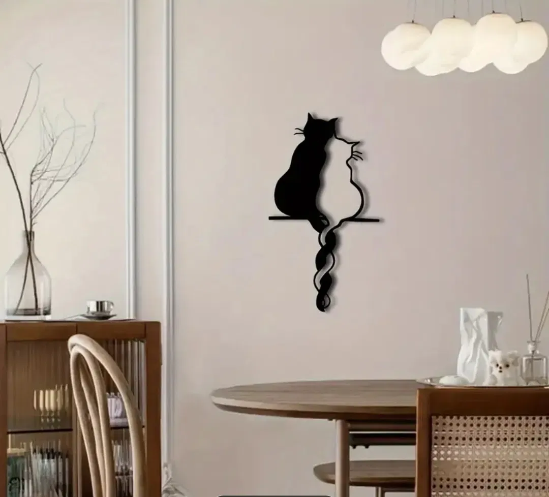 Thiết kế gồm hai chú mèo với phần đuôi quấn vào nhau, tạo nên một món trang trí treo tường hài hòa và thanh lịch. Phong cách silhouette làm nổi bật sự đơn giản và vẻ đẹp của dáng mèo.