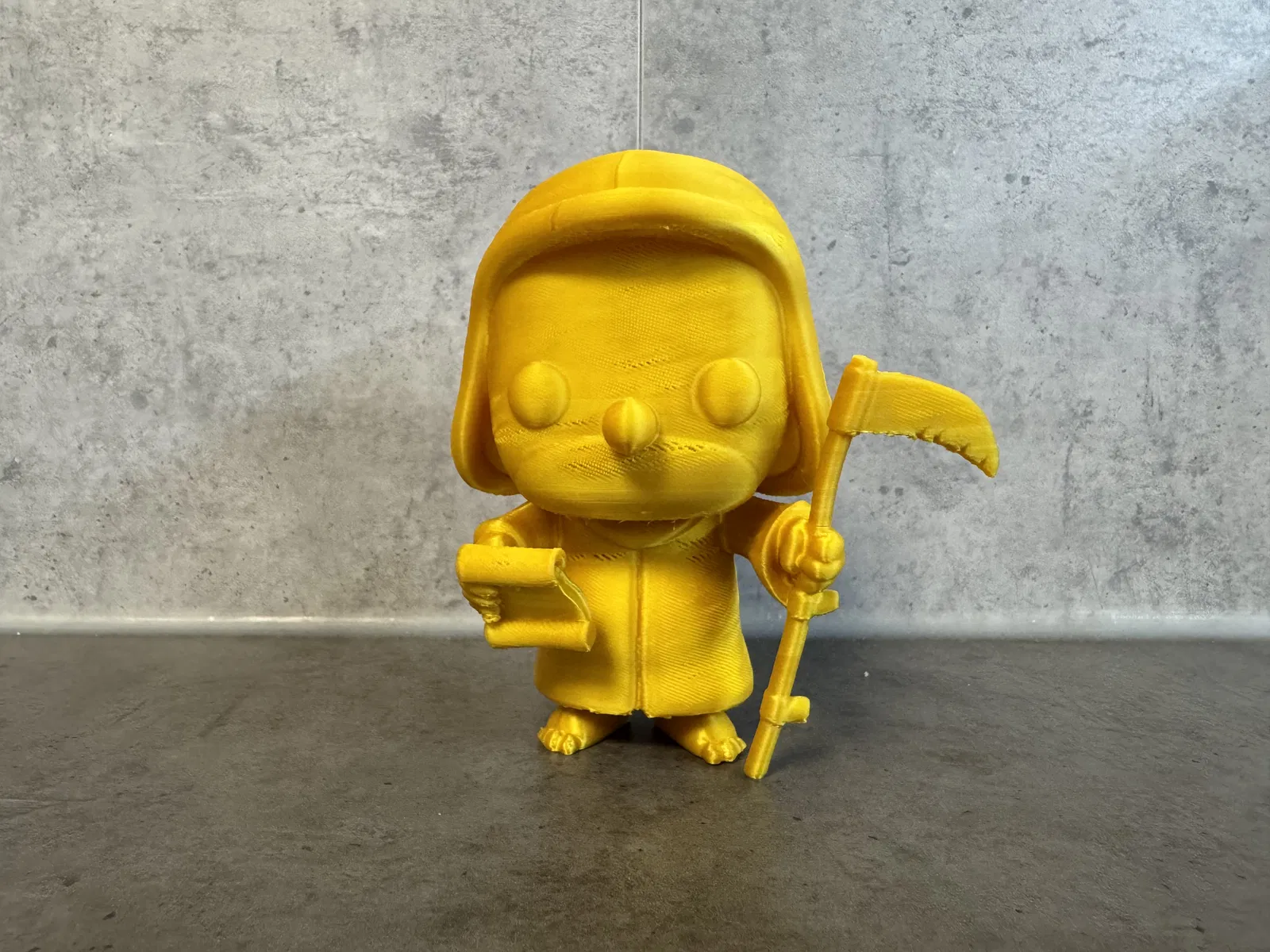 Hồ sơ in tối ưu cho mẫu Homer Simpson – Grim Reaper phong cách Funko Pop trên máy in 3D FDM. Khuyến nghị PLA, nozzle 0.4 mm, layer 0.16 mm, infill 10–20% và cần supports cho các phần overhang.