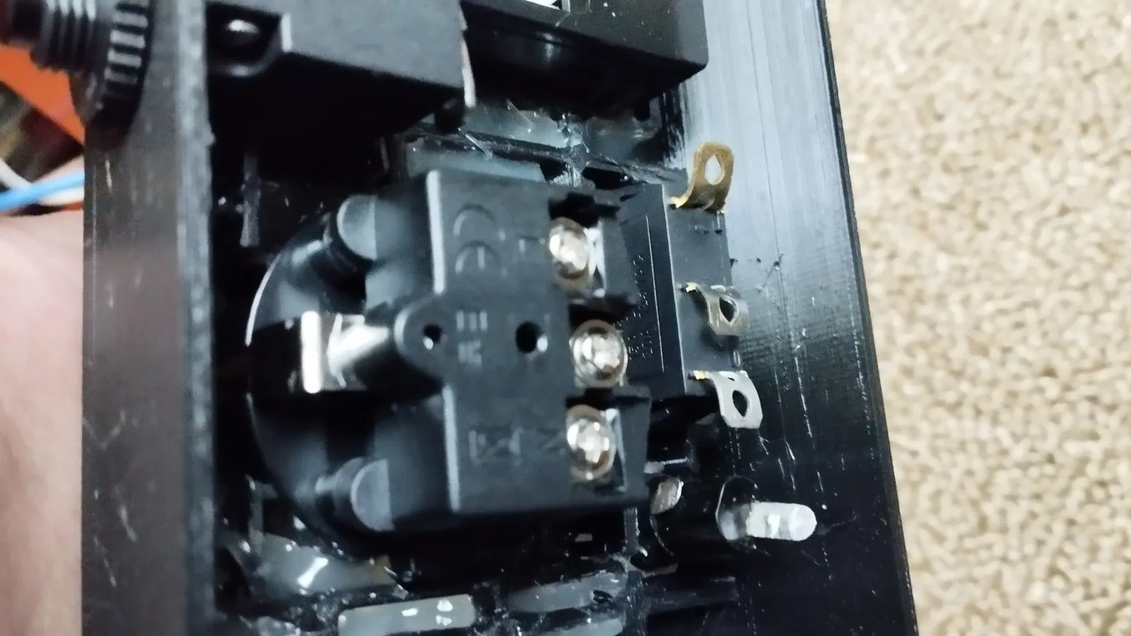 Đế cầu chì (fuse socket) và công tắc nhiệt (thermal switch) là loại giống hệt cái đi kèm theo máy.