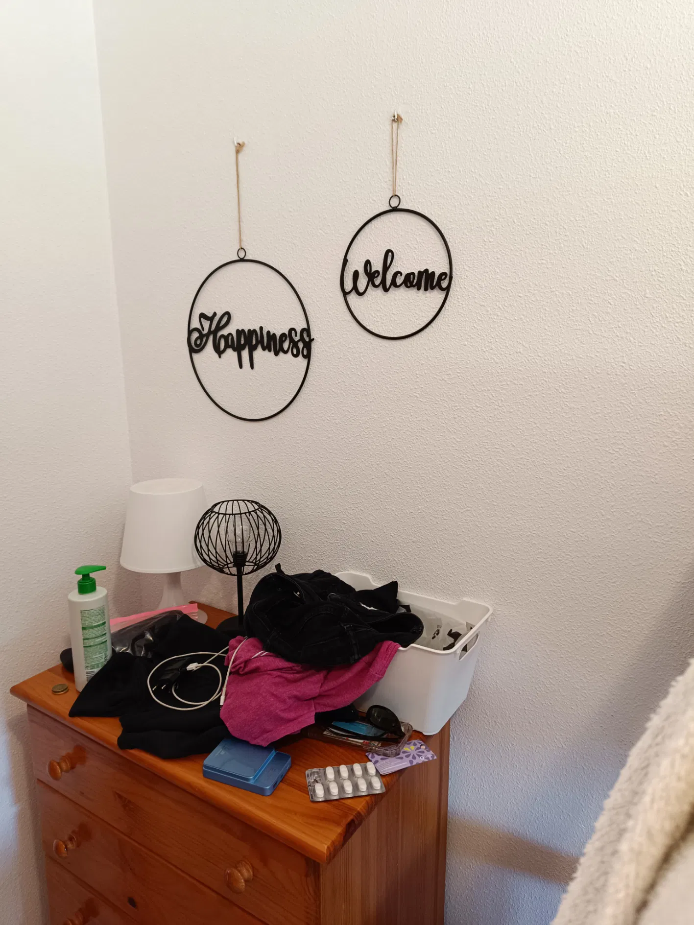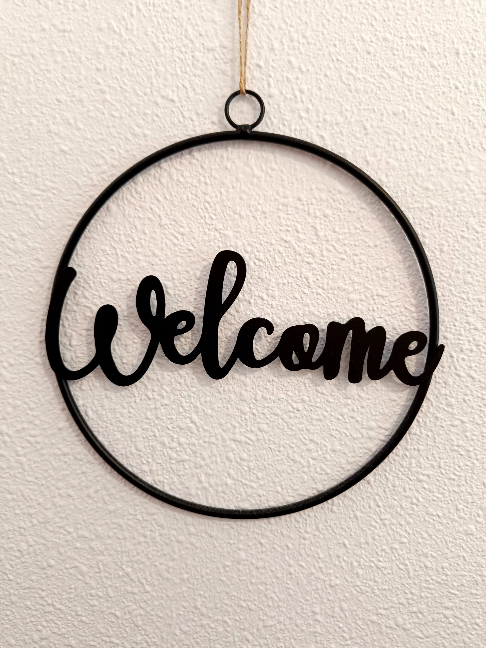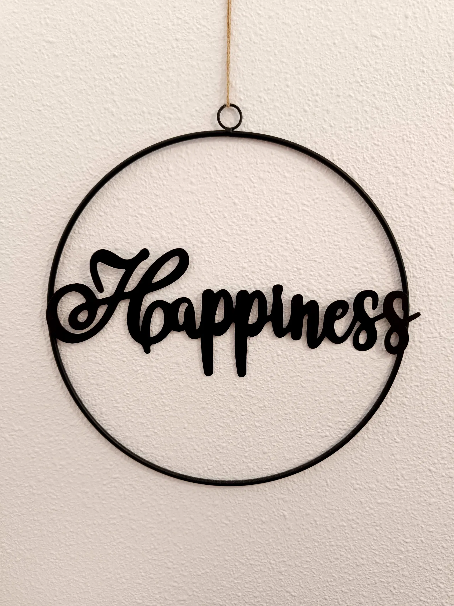 Mẫu “Happiness Wellcome - Hang-Wall decoration” là bảng chữ treo tường dạng khung tròn, mang thông điệp tích cực để làm đẹp và tạo cảm giác chào đón cho lối vào, phòng khách hay góc decor trong nhà.