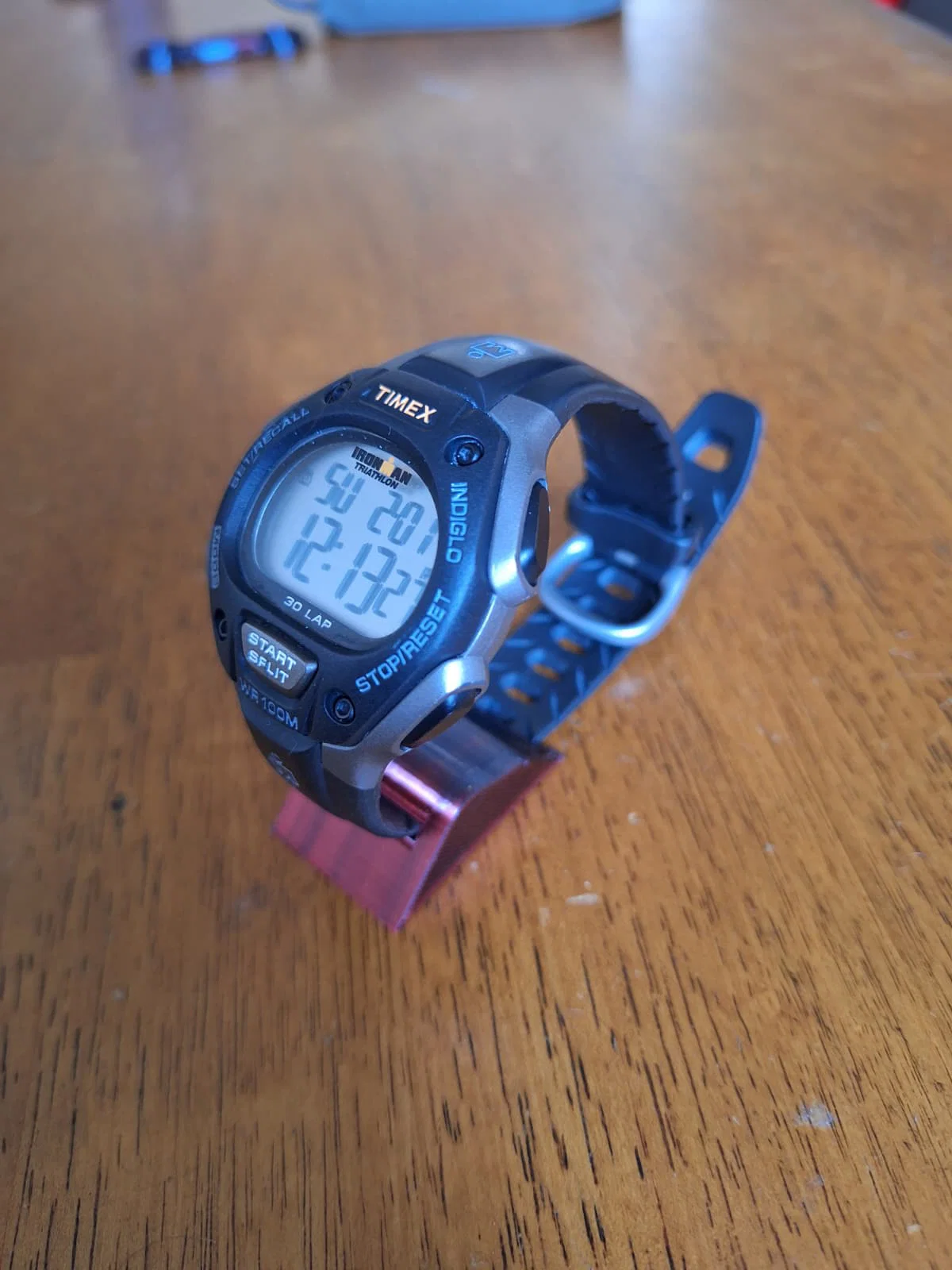 Một giải pháp gọn nhẹ để dựng đồng hồ TIMEX Ironman lên trưng trên bàn làm việc hoặc bàn đầu giường.