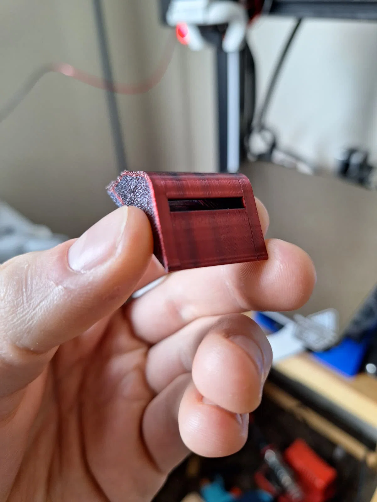 Mình in mẫu này mất khoảng 30 phút, vừa lấy ra khỏi máy là dùng được liền. Không cần supports nếu bạn in theo hướng nằm nghiêng (laying on its side). Mình in với 10% infill, 2 walls, nhưng hoàn toàn có thể in với infill thấp hơn nữa.