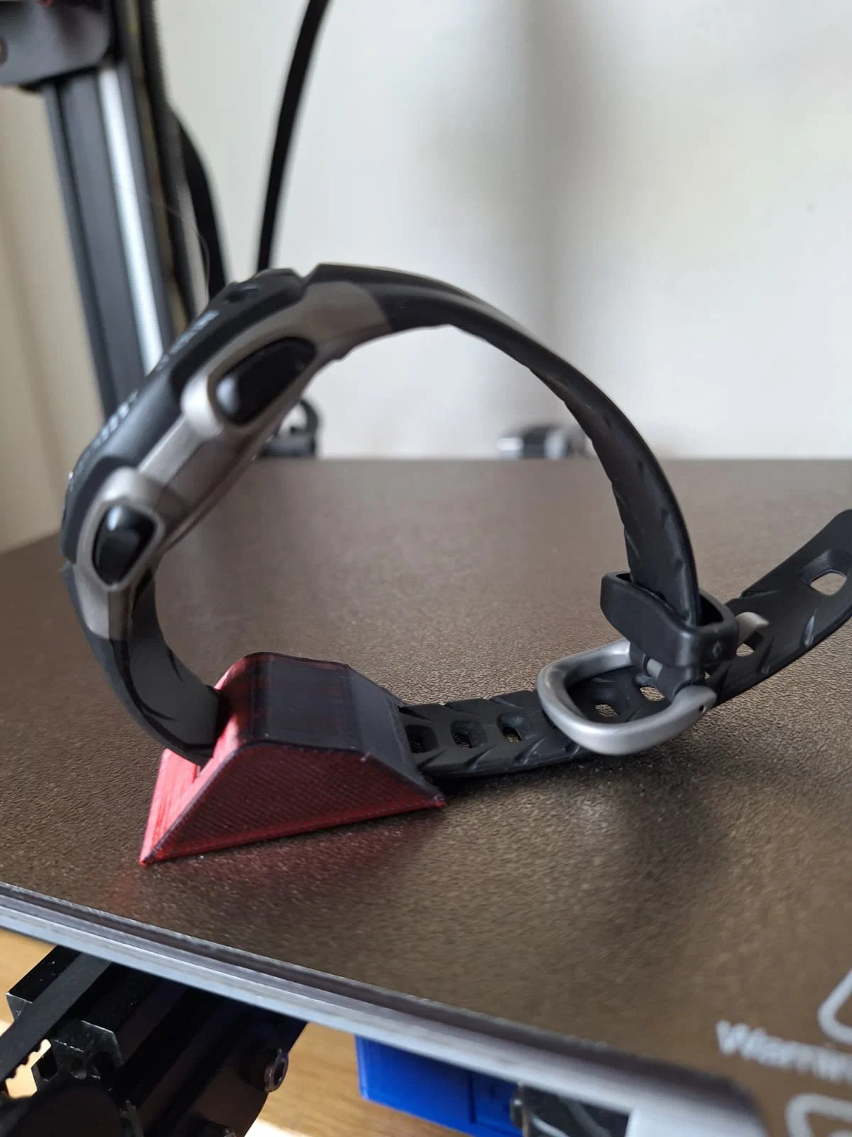 Bệ đỡ nhỏ gọn giúp đồng hồ TIMEX Ironman tự đứng vững trên bàn làm việc hoặc bàn đầu giường để dễ quan sát giờ. In khoảng 30 phút, không cần supports nếu in nằm nghiêng; khuyến nghị 10% infill, 2 walls.
