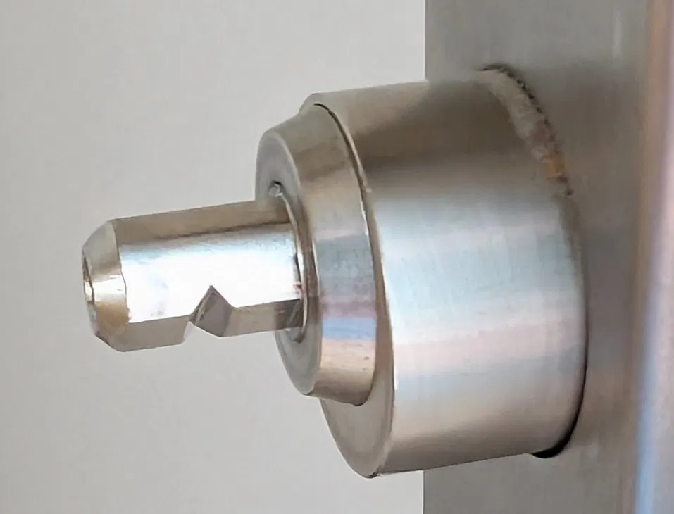 Adapter cho Nuki Smart Lock PRO (5th Gen) dùng với CH-Zylinder dạng knob. Gắn lên trục 8mm double flat (trục tròn có 2 mặt phẳng song song cách nhau 6mm), có insert ren M3/M4 để bắt vít và cố định.
