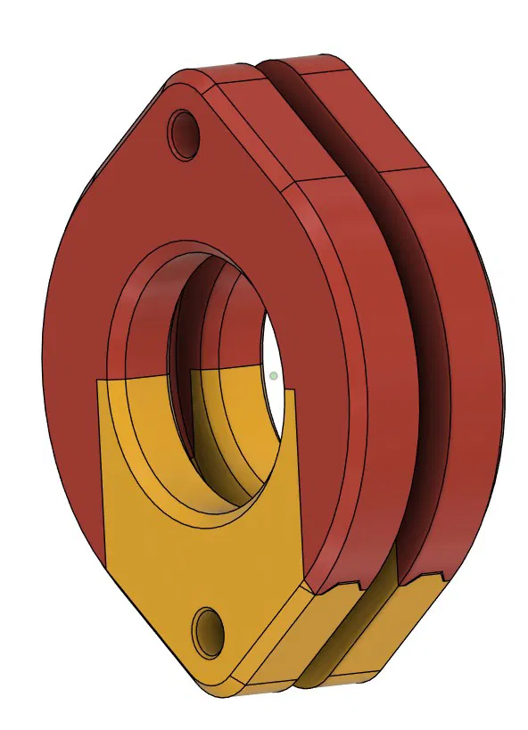 Đây là một cable gland dạng tách đôi, giúp bảo vệ dây cáp khỏi hư hỏng do các cạnh sắc gây ra. Mình dùng nó cho “PrintClosure Project” để đi (route) bó dây cáp của bộ nguồn ra bên ngoài. Các tấm acrylic ở đó dày 3 mm.