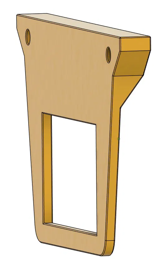 Khung lắp âm cho thermometer/hygrometer dạng số trong dự án PrintClosure. Lỗ khoét 46,5 × 27 mm, thiết kế dạng clip để kẹp thiết bị vào khung và có 2 lỗ khoan để bắt cố định vào mặt trong cánh cửa.
