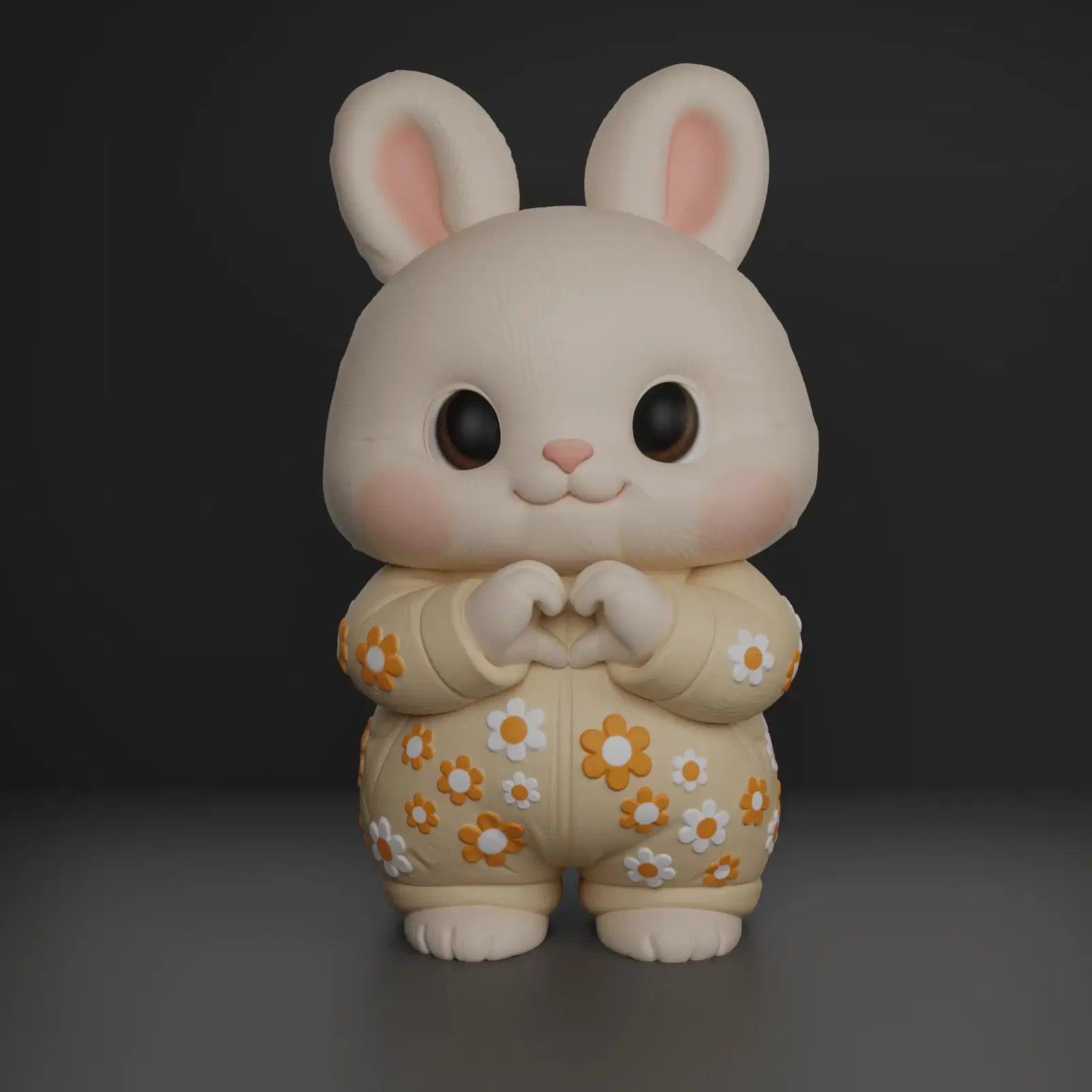 Mẫu Adorable Heart-Handed Bunny với dáng bo tròn và biểu cảm dễ thương, tạo cảm giác ấm áp. In nguyên khối từ file STL, phù hợp decor bàn/kệ, phòng bé hoặc làm quà tặng; có thể thêm đế để vững hơn.