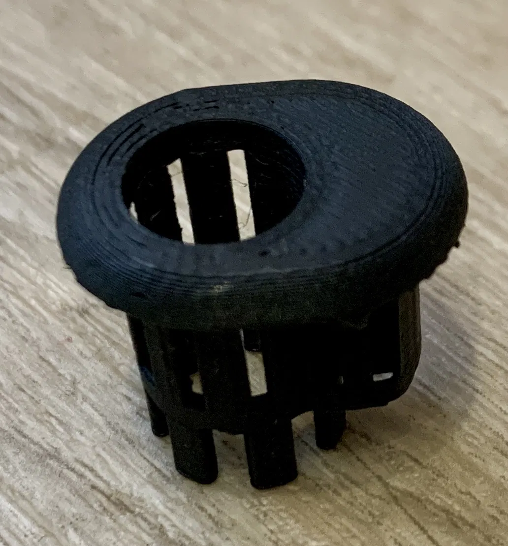 Mẫu 3D rosette núm cửa trước bên phải cho VW Passat B5, làm để thay thế chi tiết zin bị nứt. Có file .3mf từ PrusaSlicer kèm support thủ công. Khuyến nghị in PETG nếu môi trường nóng; PLA dùng để test.