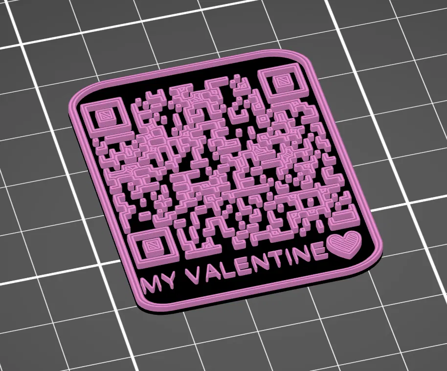 Tấm plate Valentine in 3D có mã QR để người thương quét và mở ra một trang riêng tư với bài “love song” nho nhỏ. Thiết kế tối giản, cá nhân; hướng dẫn PNG → SVG bằng Inkscape đơn giản, dễ làm.