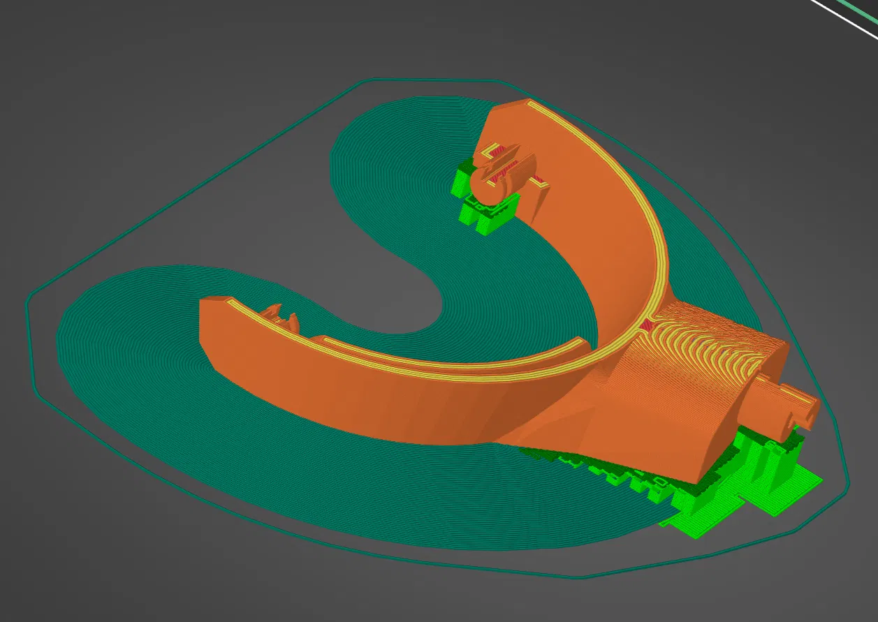 Nên in bằng PETg hoặc vật liệu cứng hơn, với infill cao – khoảng 80% trở lên là ổn nhất. Dùng brim rộng (mình dùng 20 mm) và thêm supports dưới các phần bị overhang. Mình có test in ở Z-resolution 0.16 mm0.10 mm, cả hai đều dùng được nhưng 0.10 mm nhìn đẹp hơn. Hình chụp là chi tiết in ở 0.10 mm trên Ender 3.