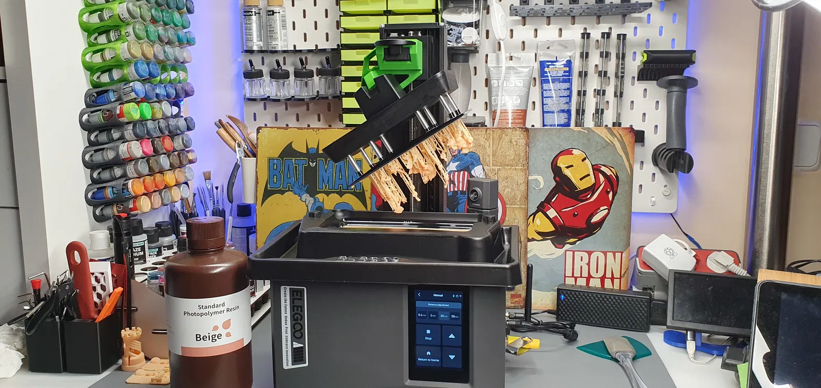 Cái drip bracket này có thể giúp hứng lại một phần lớn lượng resin chưa dùng, đồng thời giảm thời gian làm sạch bàn in.