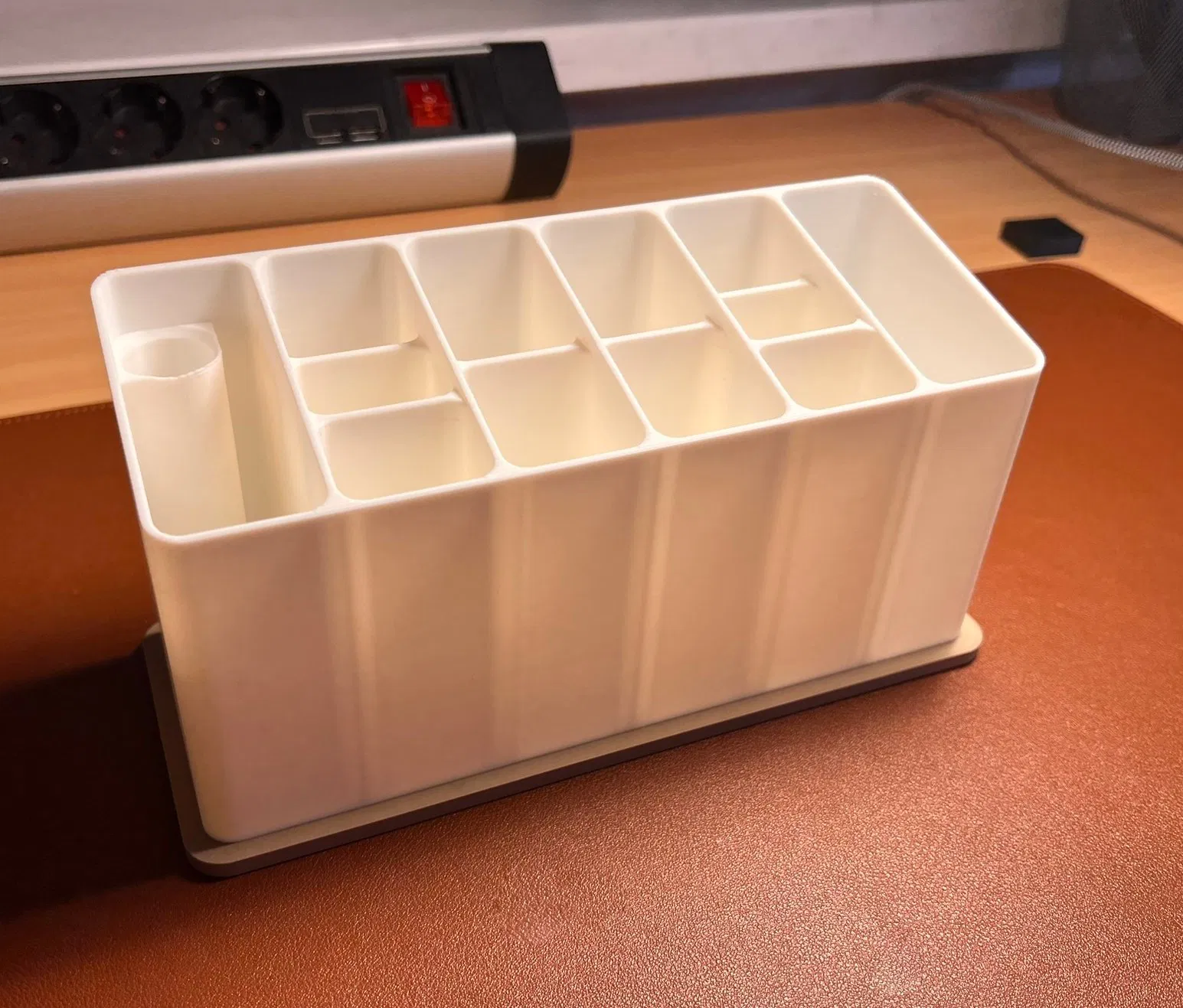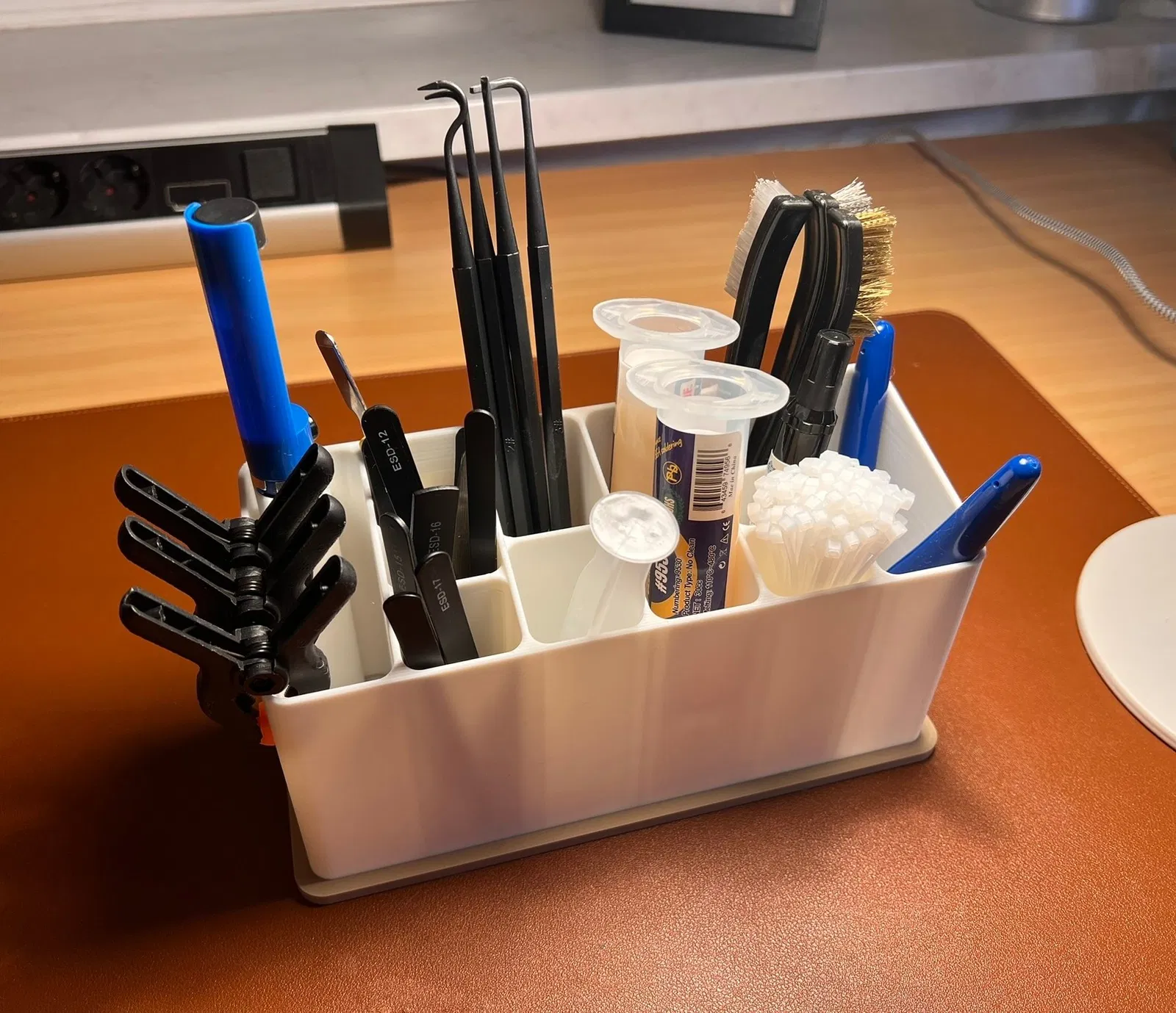 Kệ sắp xếp bàn làm việc rộng rãi, đơn giản, rất hợp để đựng đồ hàn (soldering), nhưng dĩ nhiên cũng dùng được cho đủ thứ khác. Thiết kế cao hơn so với nhiều organizer khác để đồ không bị rớt ra ngoài, mà vẫn dễ lấy và cầm nắm.
