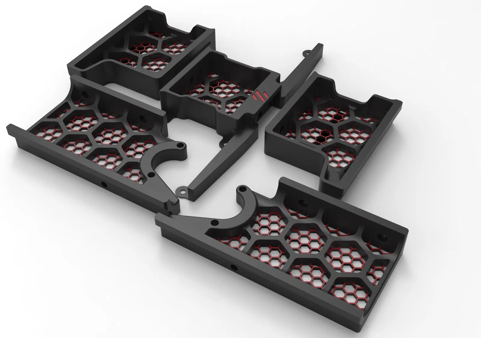 Mình remixed bộ skirts mặc định của Voron 2.4, thêm một lớp họa tiết hex nằm bên trong hex nguyên bản.
